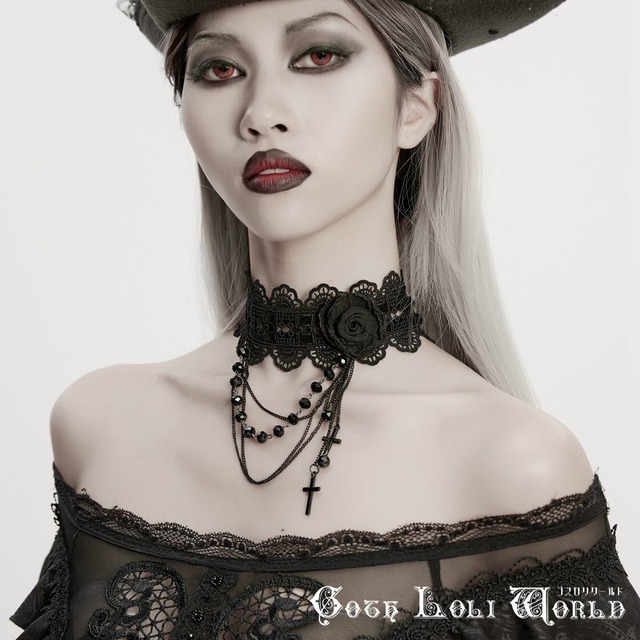【即納/送料無料】ゴスロリワールド WS-873LHF-BK 地雷系 ゴスロリ ファッション レース 薔薇 十字架 チョーカー ゴシック ロリィタ ロリータ ビジュアル系 ヴィジュアル系