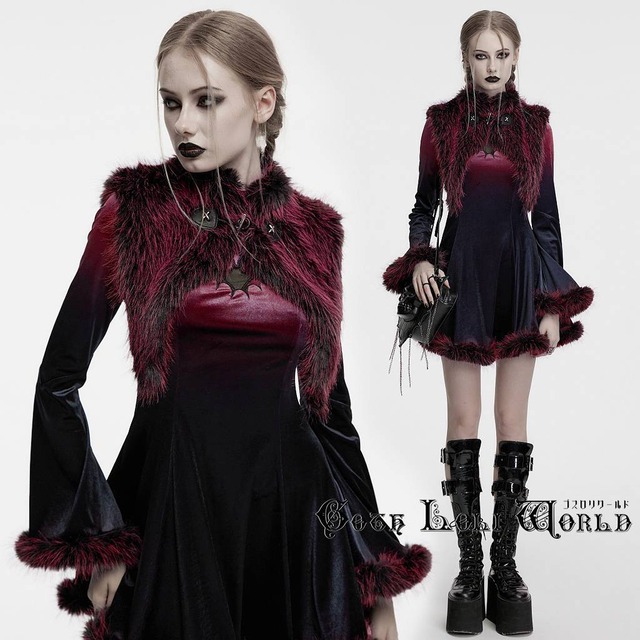【即納/送料無料】ゴスロリワールド OS-749WJF-BK-RD 地雷系 ファッション ふわふわ ショート ベスト アウター 赤色 ゴシック ビジュアル系 ヴィジュアル系 V系 地雷系 サブカル