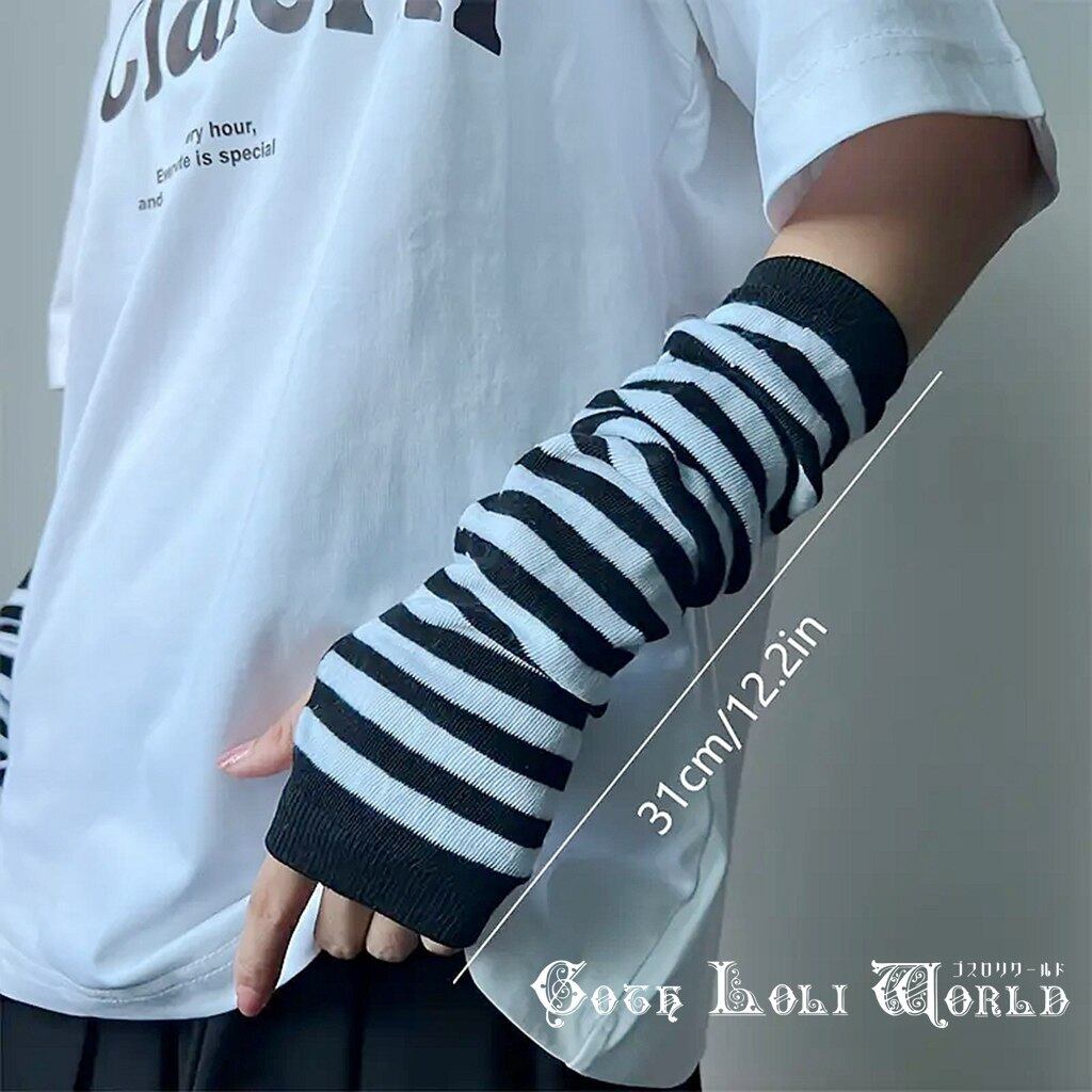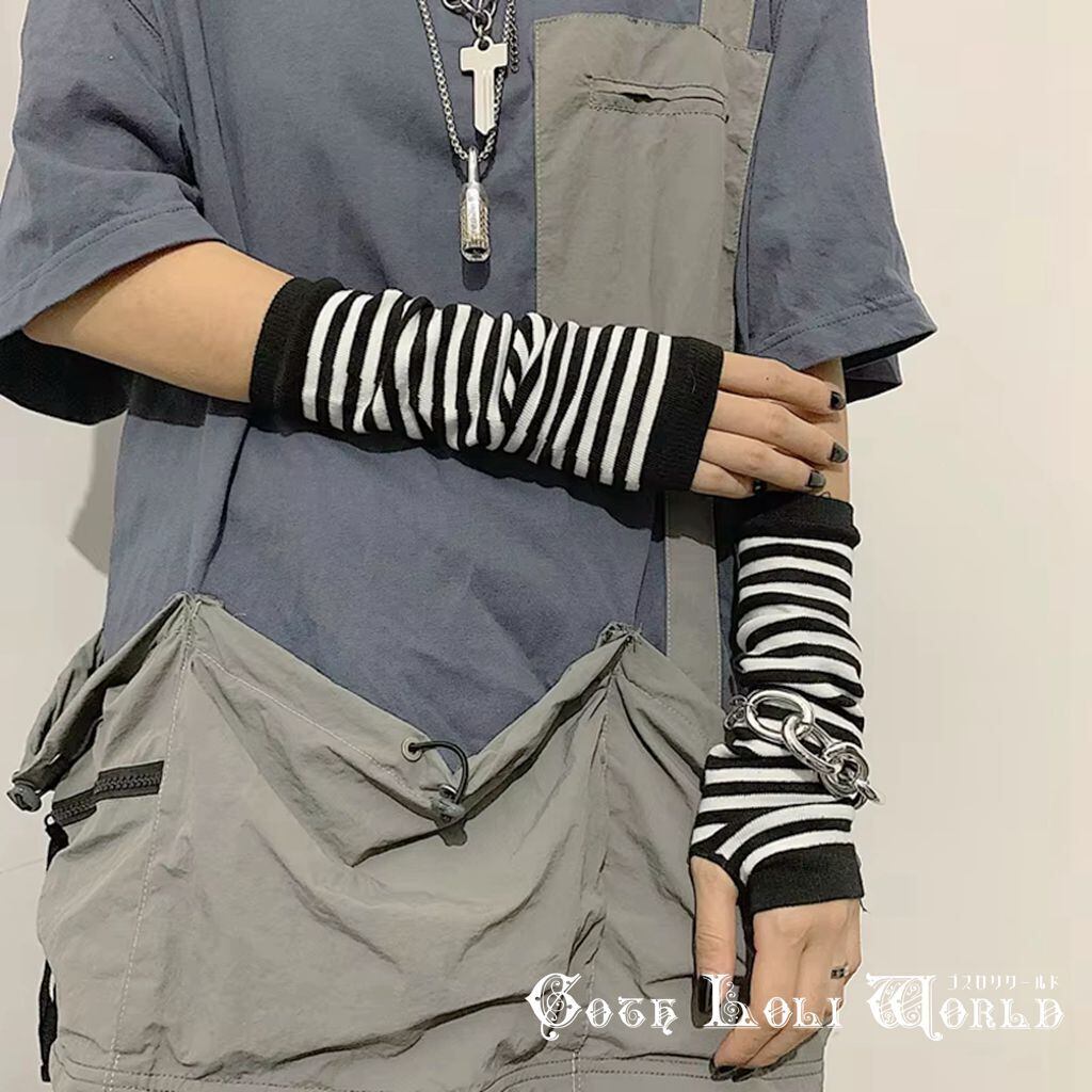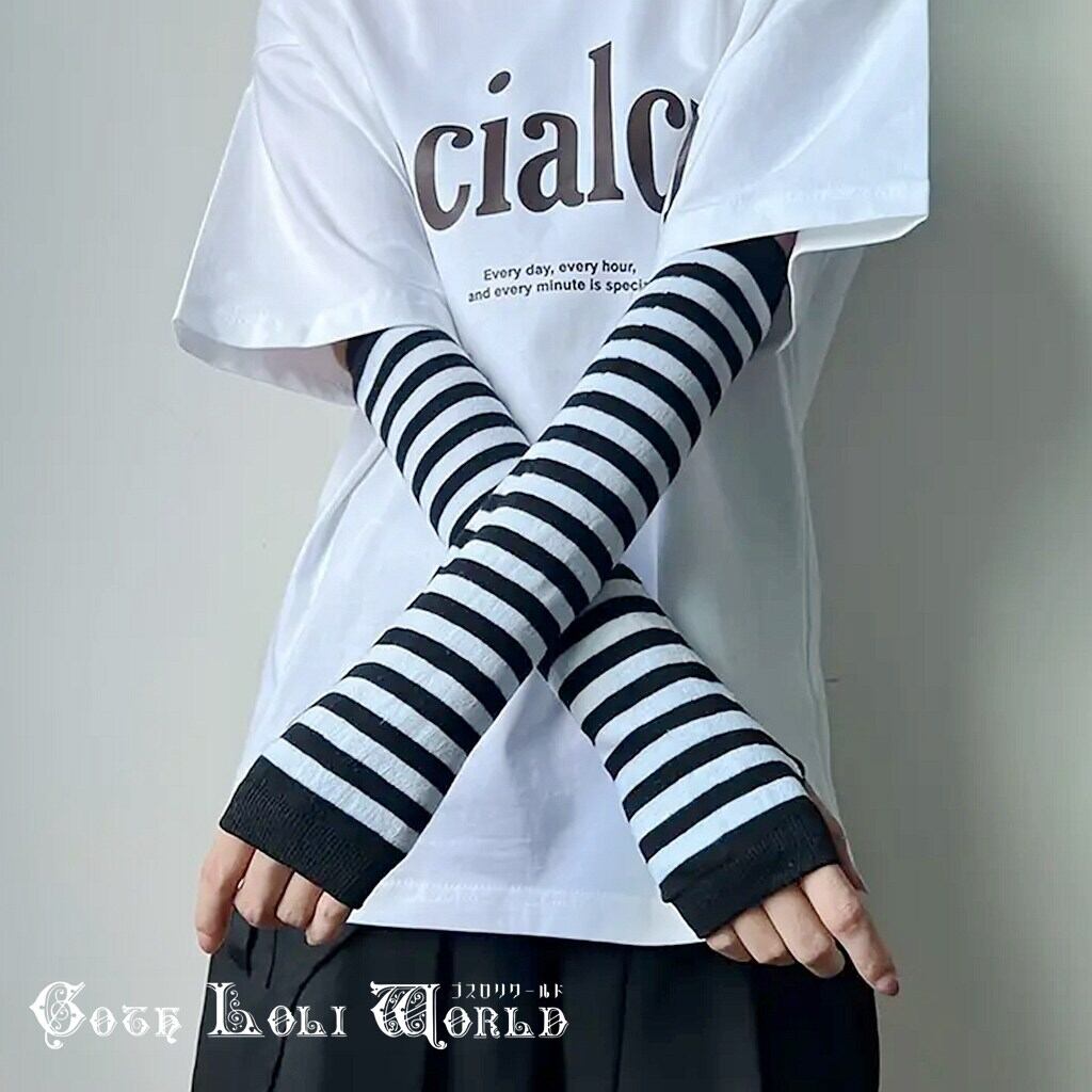 【即納/送料無料】ゴスロリワールド CE-AGL003-BW 縞模様ボーダーライン 黒白色 アームウォーマー ビジュアルファッション ユニセックス ヴィジュアル系 V系 モード系 原宿系 | ゴスロリワールド
