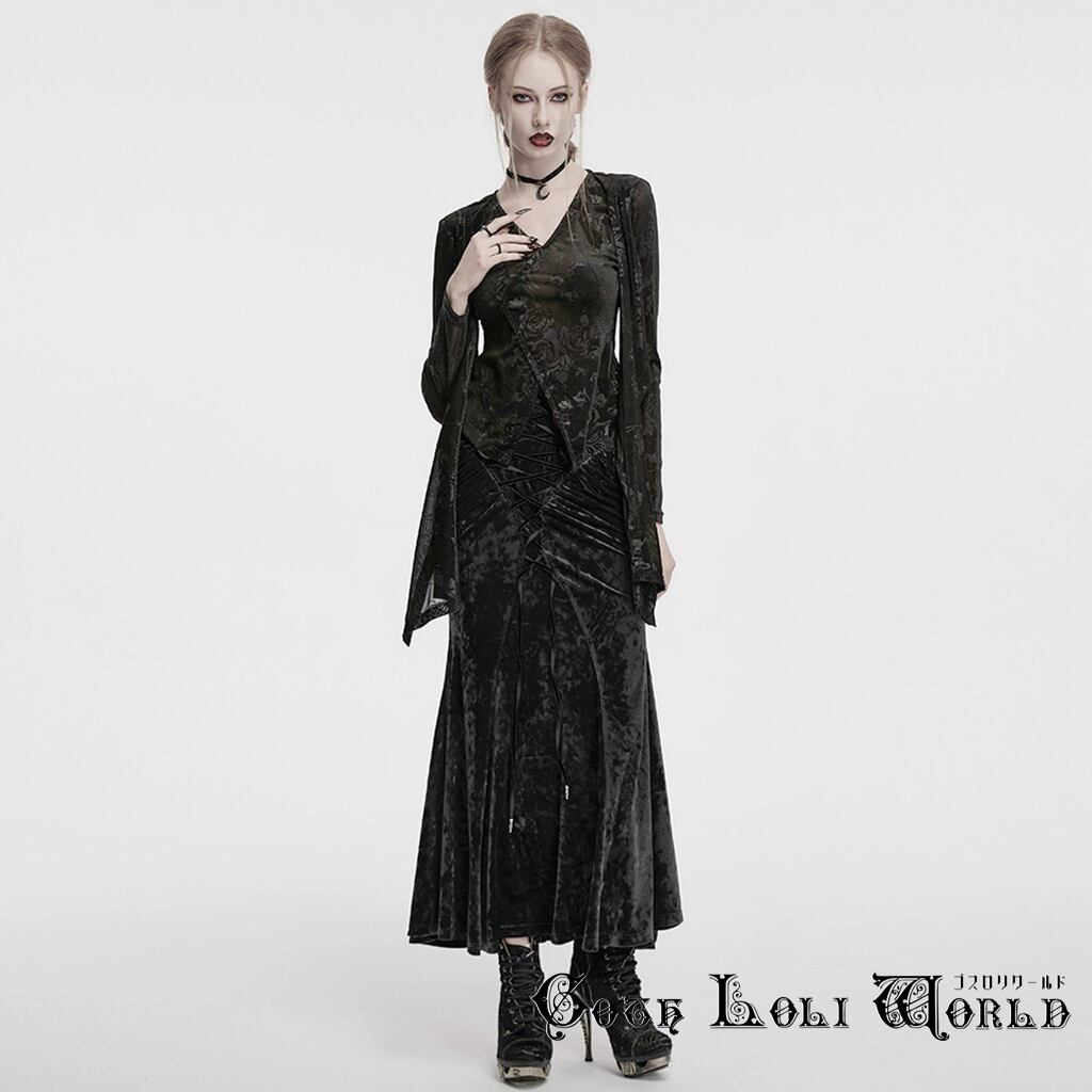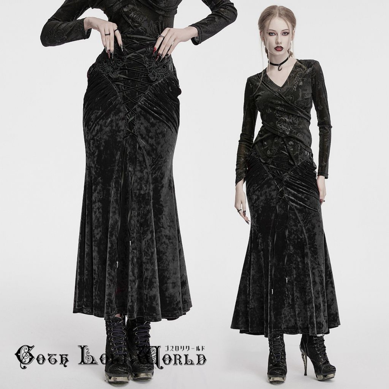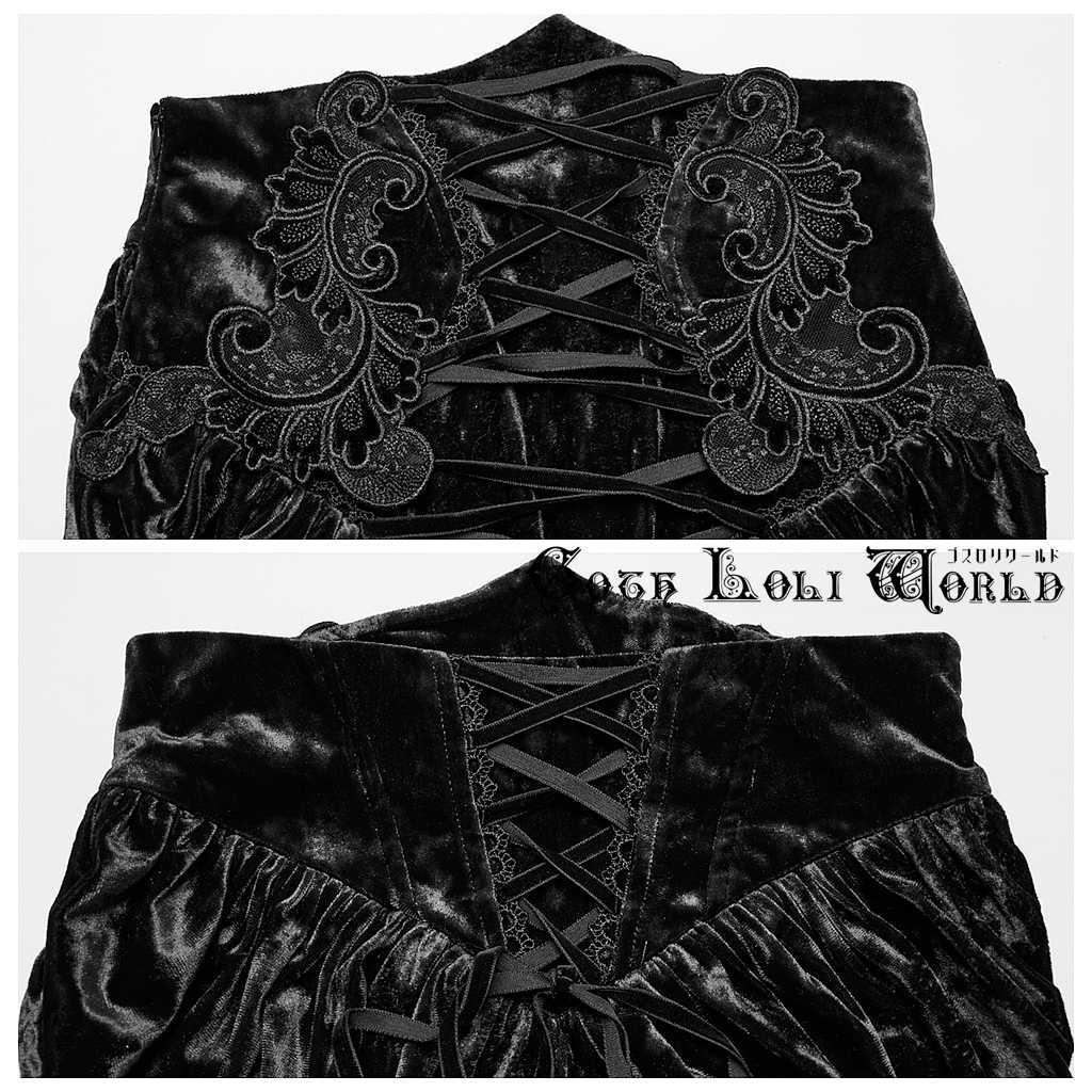 【即納/送料無料】ゴスロリワールド OQ-851BQF-BK ゴシック ファッション ハイウエスト ベルベッド ロングスカート 黒色 ゴスロリ ビジュアル系 ヴィジュアル系 V系 サブカル | ゴスロリワールド