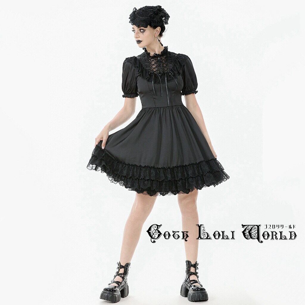 【即納/送料無料】ゴスロリワールド DW1106 ロリータ ファッション ハイウエスト半袖 ワンピース ドレス ゴシック ゴスロリ ロリィタ ビジュアル系 ヴィジュアル系 地雷系 | ゴスロリワールド