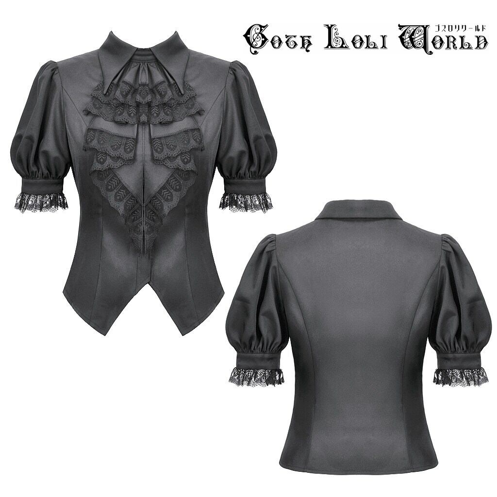 【即納/送料無料】ゴスロリワールド IW126 ロリータ ファッション ボウタイジャボ付 半袖 シャツ ブラウス 黒色 ゴスロリ ロリィタ ロリータ ビジュアル系 ヴィジュアル系 地雷系 | ゴスロリワールド