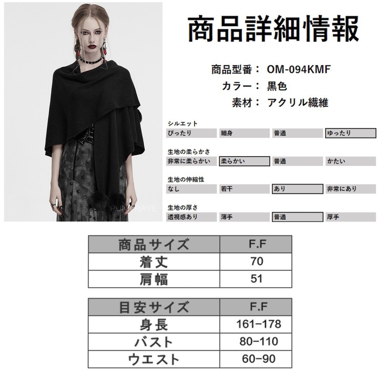 【即納/送料無料】ゴスロリワールド OM-094KMF-BK ゴスロリ ファション ポンポン バックムーン ポンチョ フード ケープ カーディガン 黒色 地雷系 ゴシック ロリィタ ロリータ | ゴスロリワールド