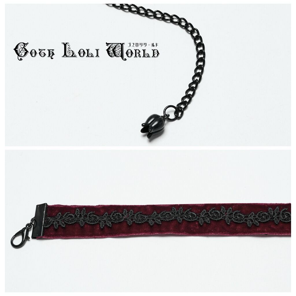 【即納/送料無料】ゴスロリワールド OS-760LHF-BK-RD ゴスロリ ファション 薔薇モチーフ ベロア チョーカー 赤色 地雷系 ゴシック ビジュアル系 V系 サブカル コスプレ 個性的 | ゴスロリワールド