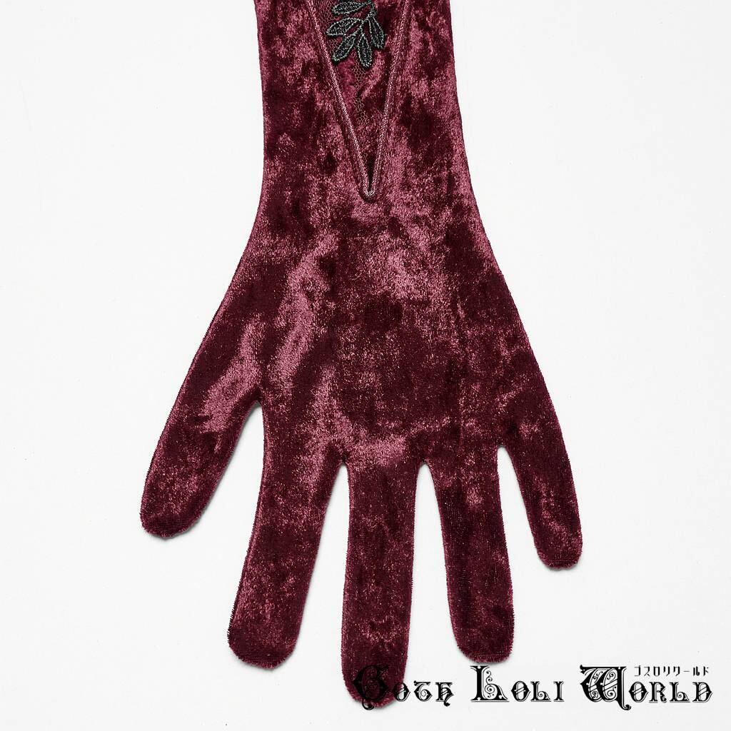 【即納/送料無料】ゴスロリワールド OS-763SSF-BK-RD ゴスロリ ファッション ベロア ロング丈 手袋 アームウォーマー 赤色 地雷系 ゴシック ビジュアル系 ヴィジュアル系 V系 | ゴスロリワールド