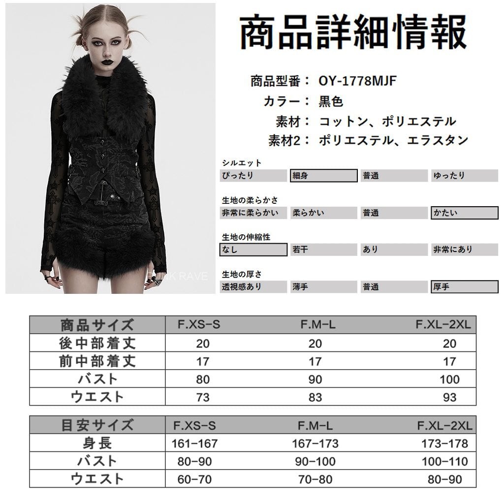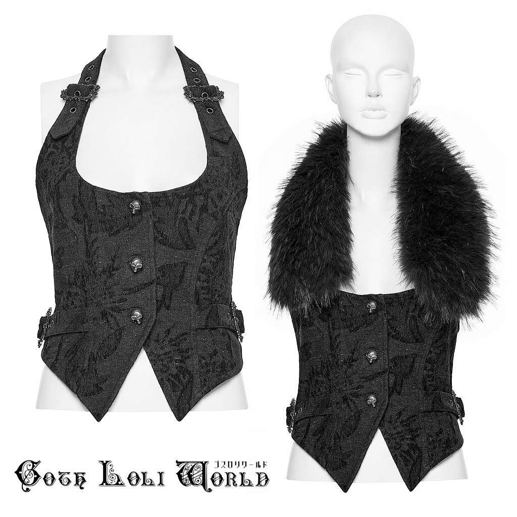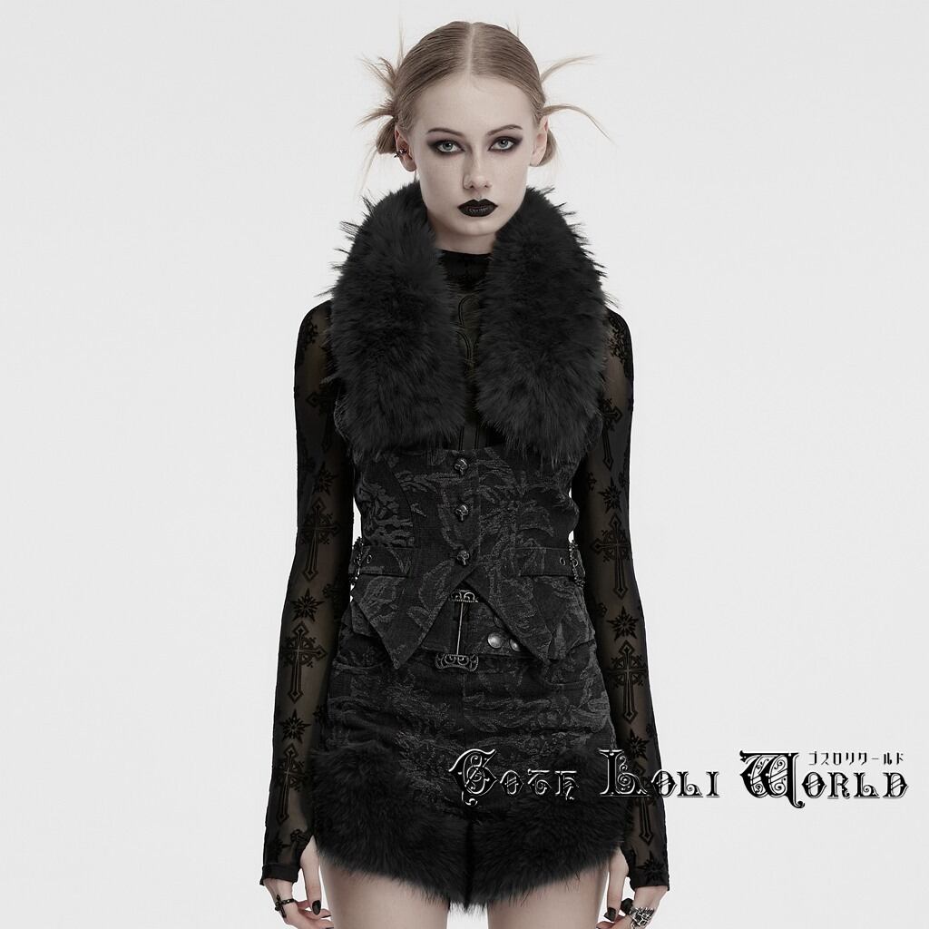 【即納/送料無料】ゴスロリワールド OY-1778MJF-BK ゴスロリ ファッション ネックファー付 ベスト ジレ ジャケット ゴシック 地雷系 ビジュアル系 ヴィジュアル系 V系 サブカル | ゴスロリワールド