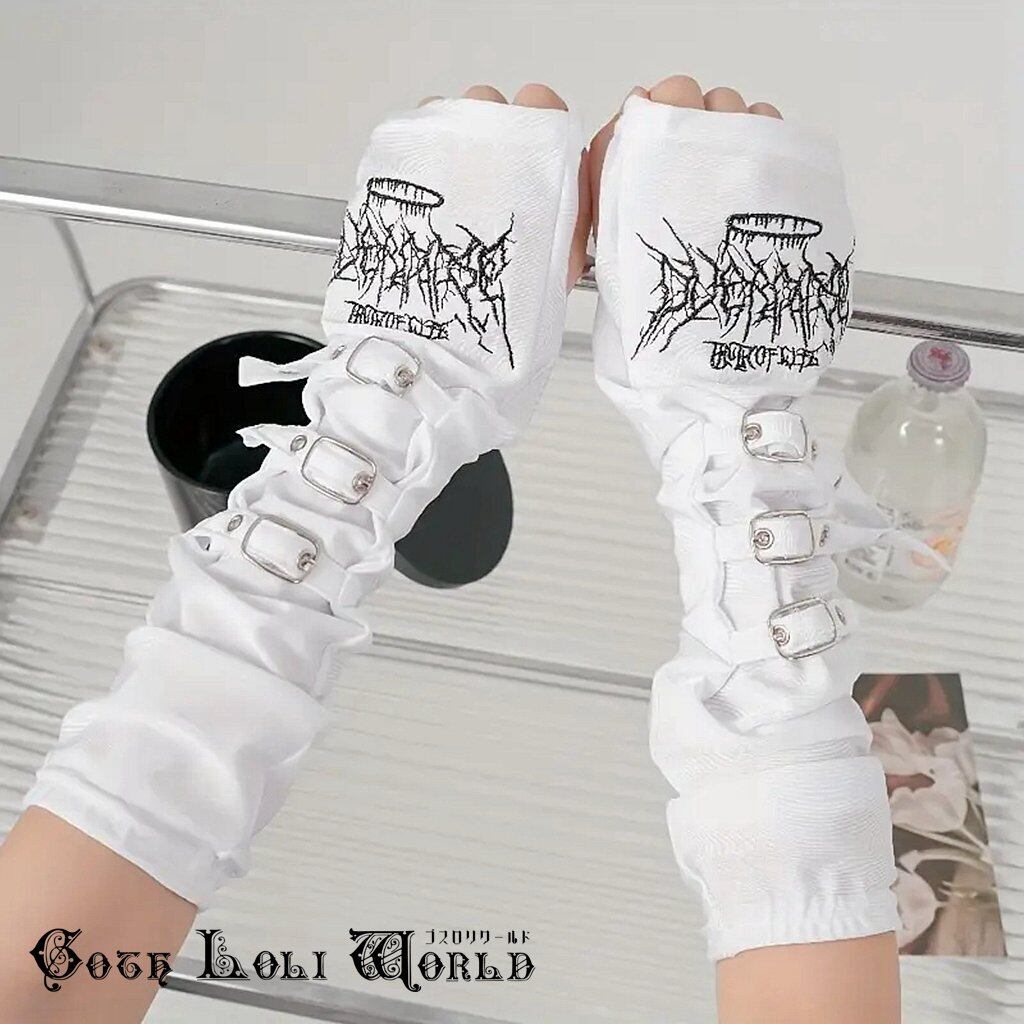 【即納/送料無料】ゴスロリワールド CE-AGL006WH パンク ロック ファッション ベルト 刺しゅう アームウォーマー アームカバー 手袋 おしゃれ ホワイト 白色 地雷系 原宿系 | ゴスロリワールド