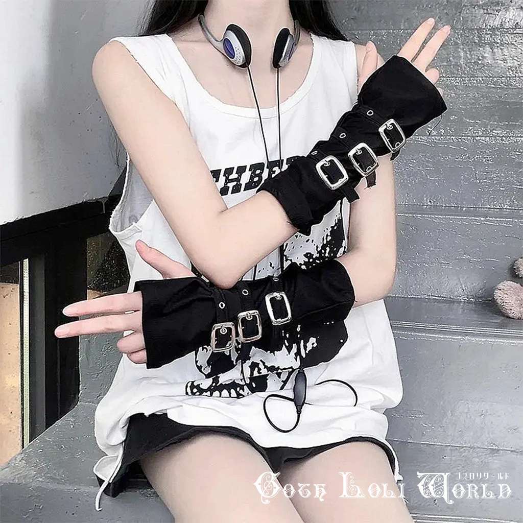 【即納/送料無料】ゴスロリワールド CE-AGL010BK パンク ロック ファッション ベルト アームウォーマー アームカバー 手袋 おしゃれ ブラック 黒色 地雷系 原宿系 日焼け防止 | ゴスロリワールド