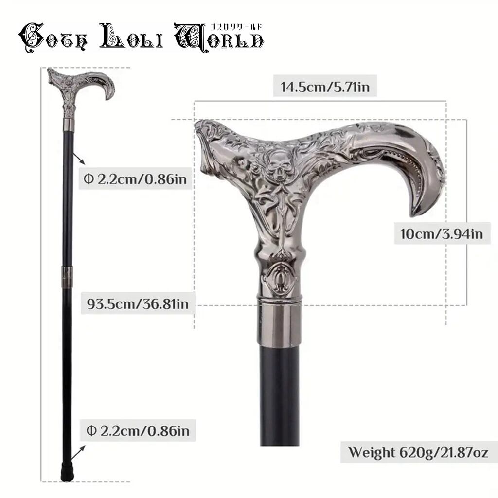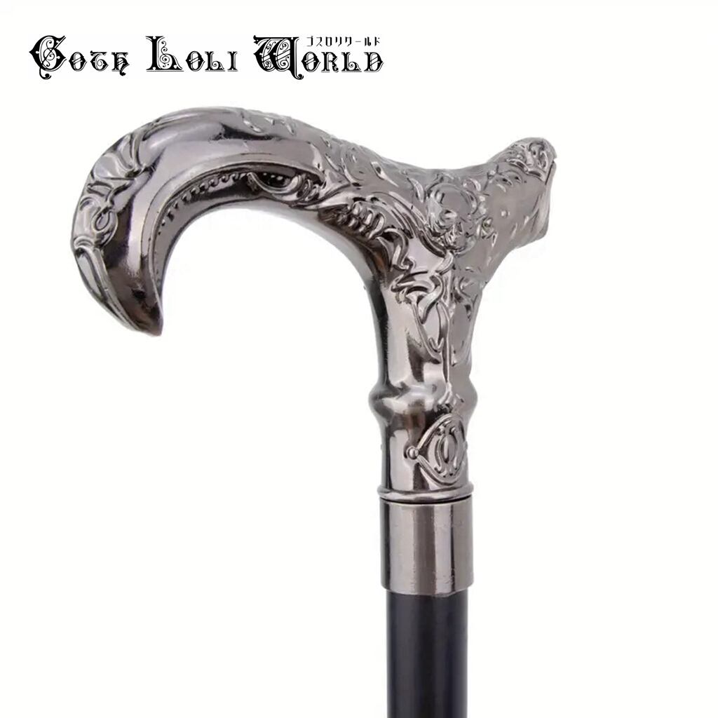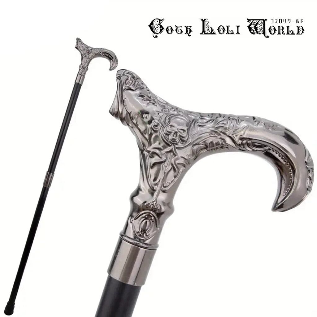 【即納/送料無料】ゴスロリワールド TUE041 ダークシルバー スカル 紳士 ステッキ シルバー つえ 高級 黒銀色 金属 ファッション ゴシック パンク ロック ヴィジュアル系 | ゴスロリワールド