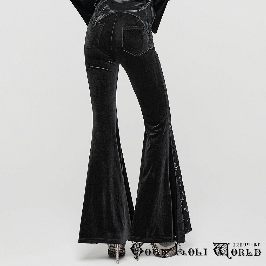 【即納/送料無料】ゴスロリワールド WK-745XCF-BK ゴスロリ ファッション ダンス用 ベロアレース フレア ロングパンツ ゴシック ロリィタ ロリータ 個性的 モード系 サブカル | ゴスロリワールド