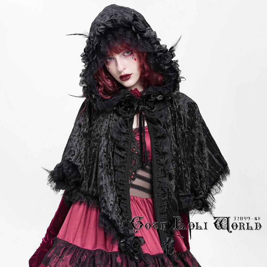 【即納/送料無料】ゴスロリワールド CA051 ゴスロリ ファッション 薔薇&羽 ベロア フーディ ポンチョ コート カーディガン クローク マント 地雷系 ゴシック ロリィタ ロリータ | ゴスロリワールド