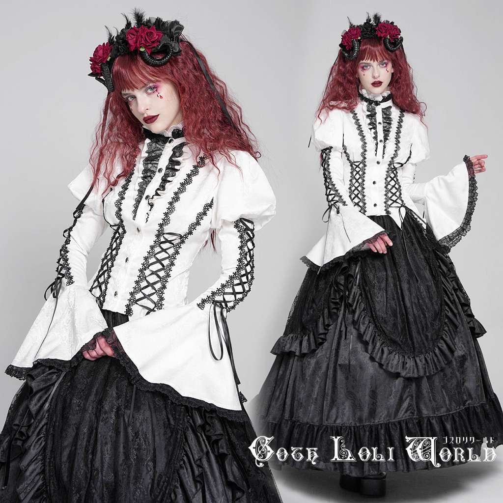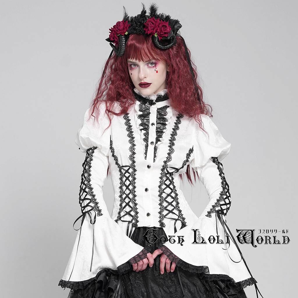 【即納/送料無料】ゴスロリワールド SHT14202 ゴスロリ 地雷系 ファッション レースアップ 長袖シャツ ブラウス 白色 ゴシック ロリィタ ロリータ ビジュアル系 V系 地雷系 | ゴスロリワールド