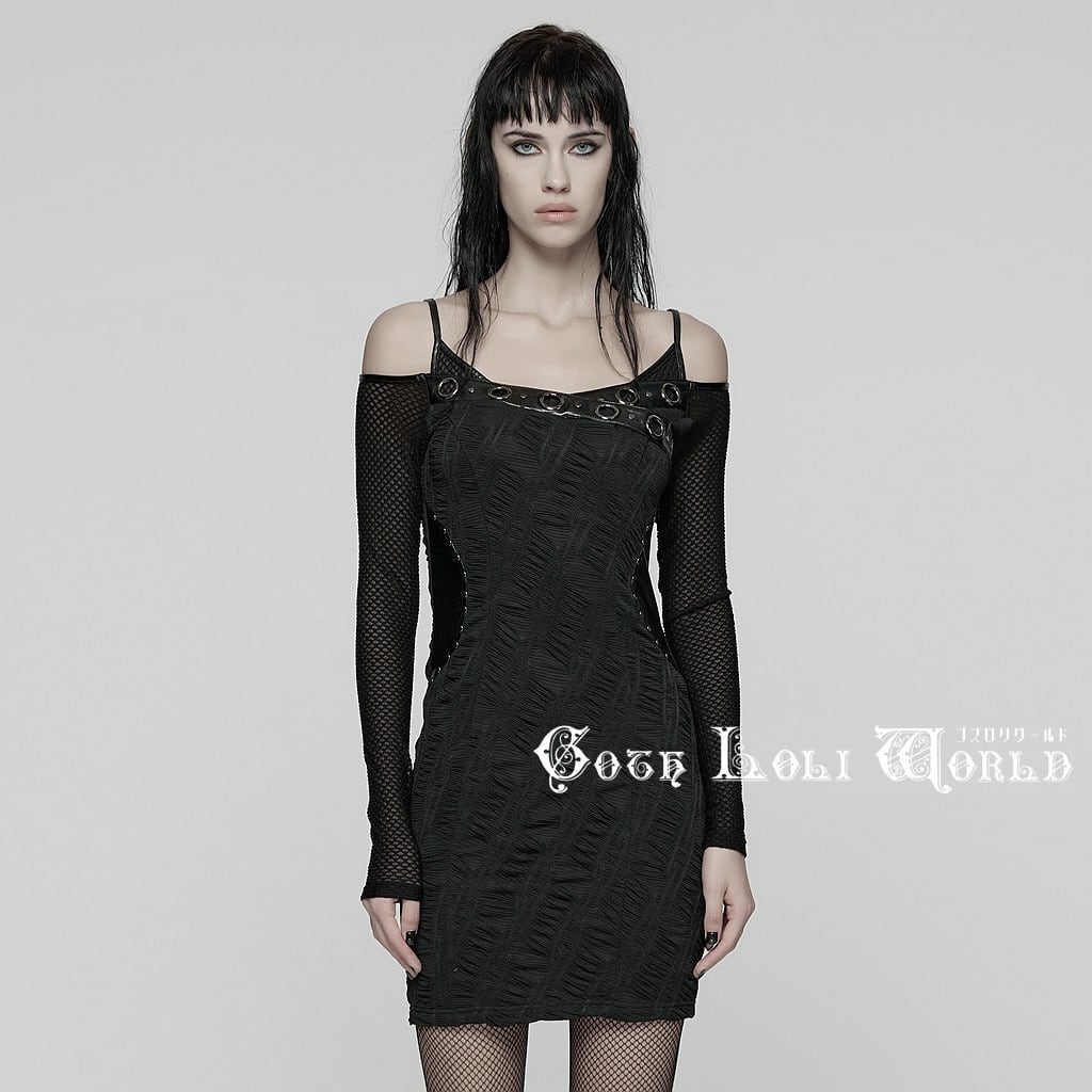 【即納/送料無料】ゴスロリワールド WQ-912LQF-BK パンク ロック ファッション タイト シャーリング チュニック ミニワンピース ドレス ゴシック ビジュアル系 ヴィジュアル系 V系 | ゴスロリワールド