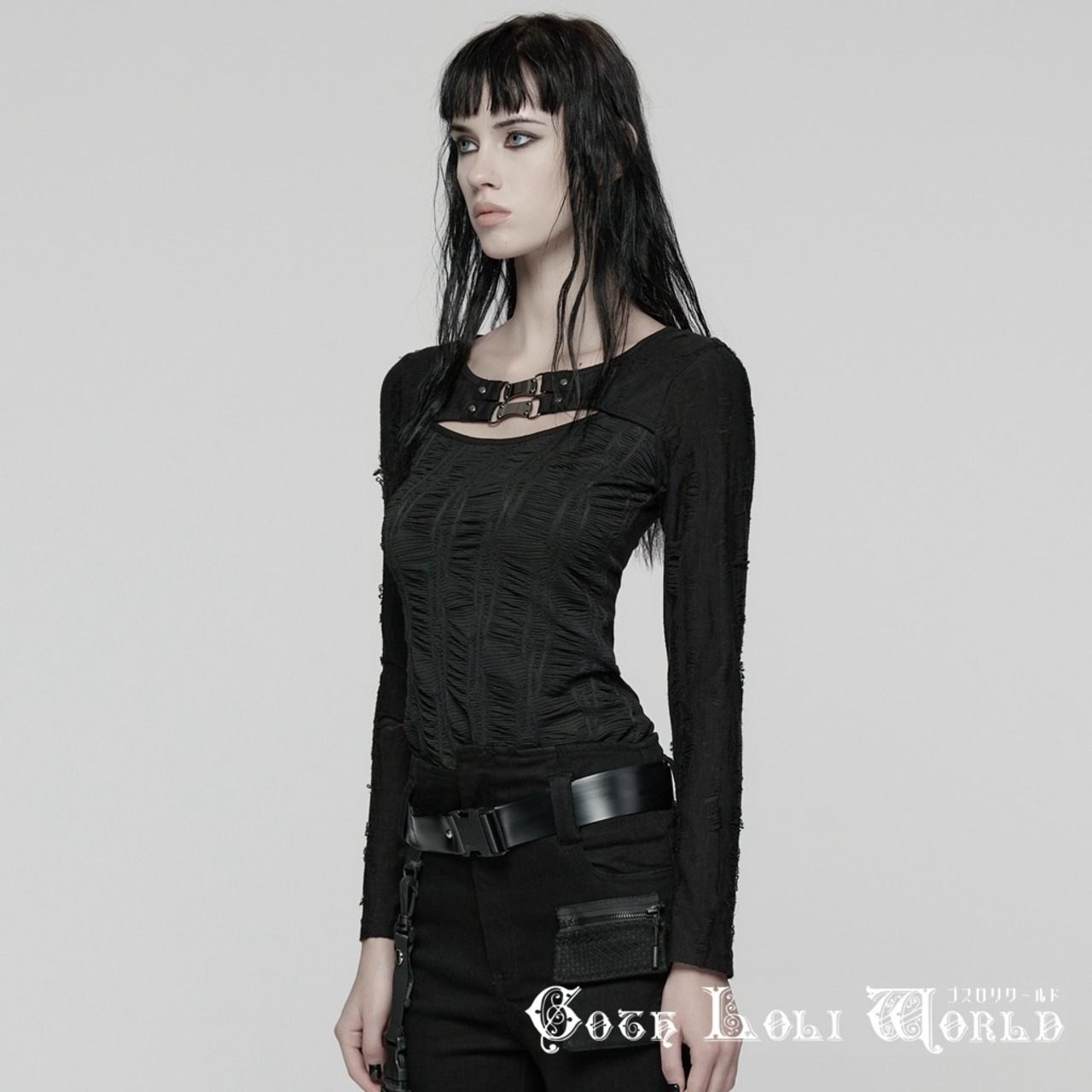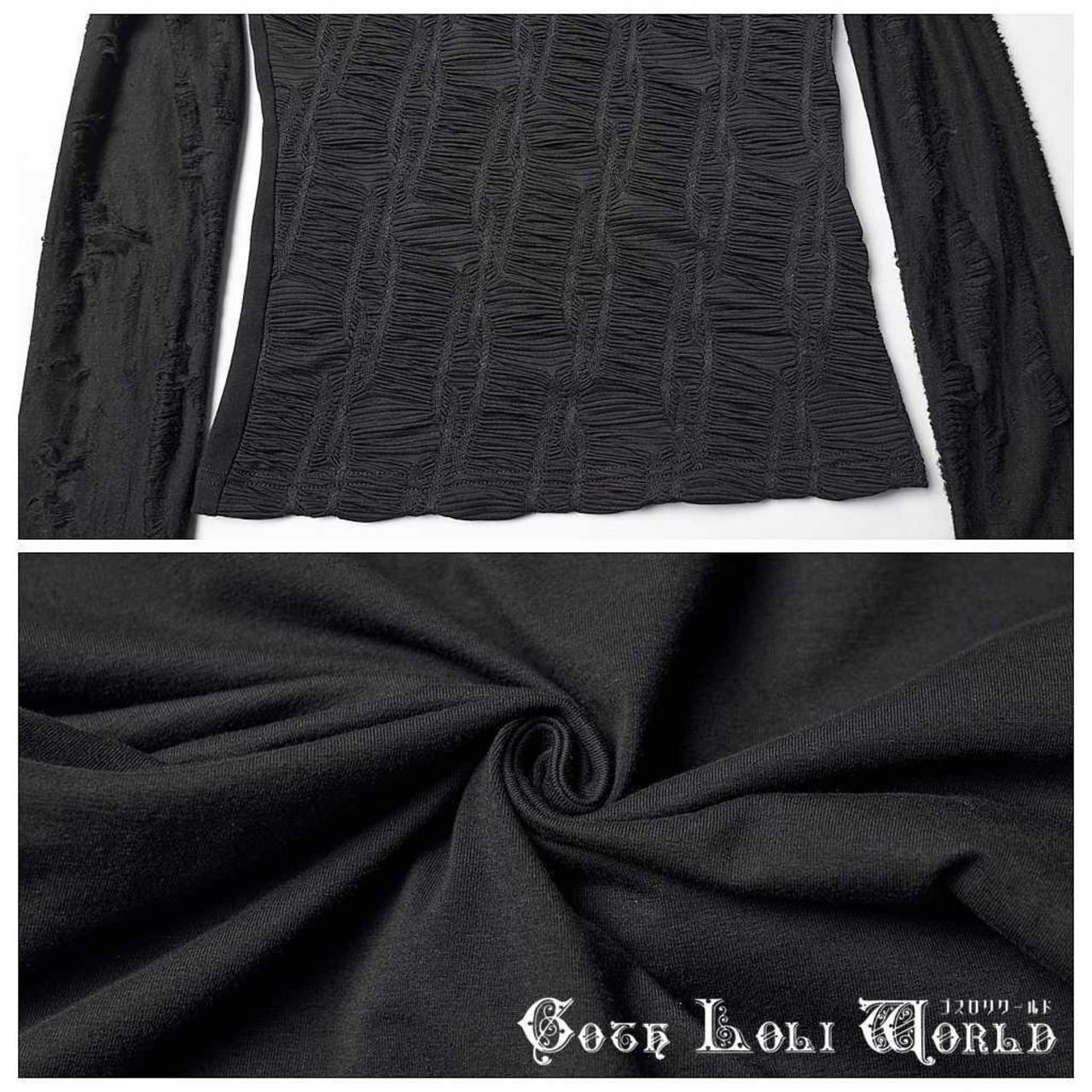【即納/送料無料】ゴスロリワールド WT-1034TCF-BK パンク ロック ファッション ダメージ風 シャーリング 長袖 カットソー ゴシック ビジュアル系 ヴィジュアル系 V系 地雷系 | ゴスロリワールド