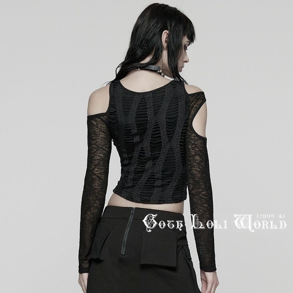 【即納/送料無料】ゴスロリワールド WT-1042TCF-BK パンク ロック ファッション ダメージ風 ショルダーカット 長袖 カットソー ゴシック ビジュアル系 ヴィジュアル系 V系 地雷系 | ゴスロリワールド