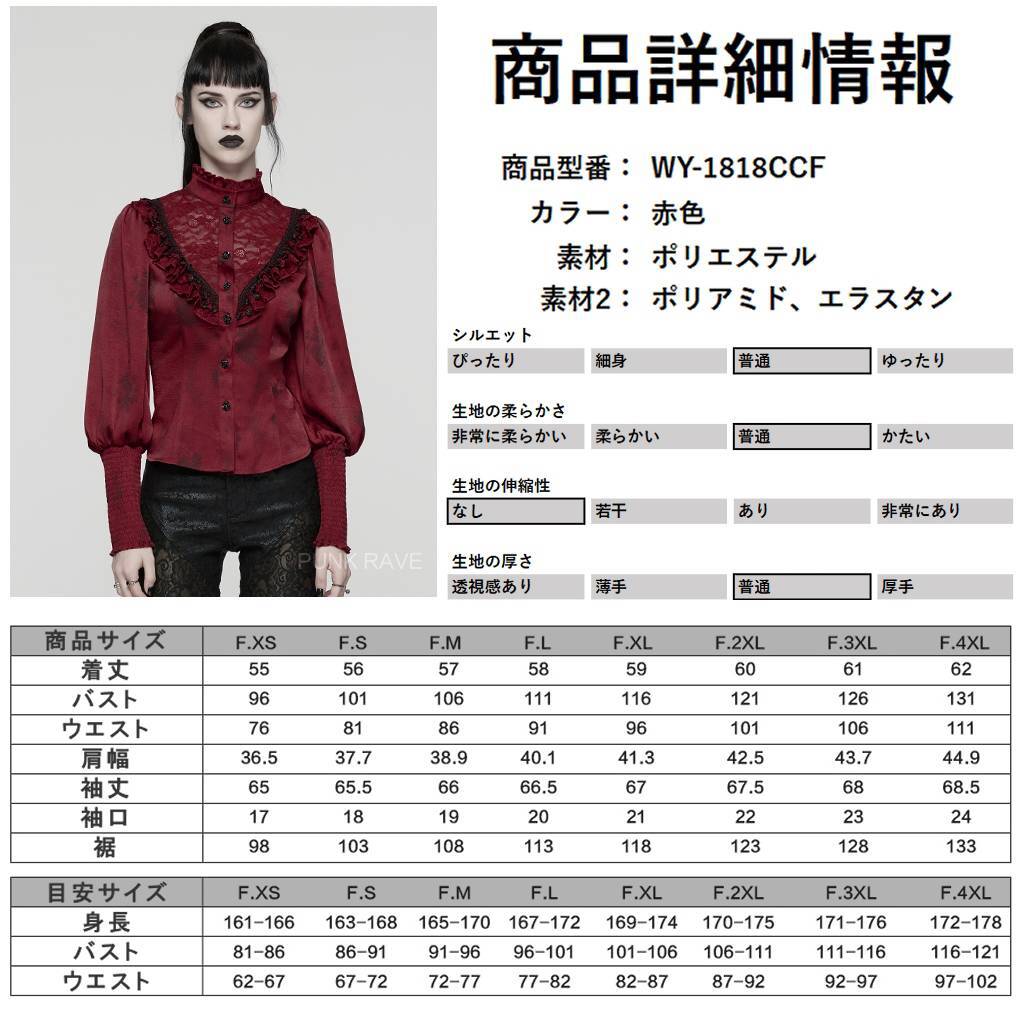 【即納/送料無料】ゴスロリワールド WY-1818CCF-RD ゴスロリ ファッション 袖口シャーリング 長袖シャツ ブラウス 赤色 ゴシック ビジュアル系 ヴィジュアル系 V系 地雷系 | ゴスロリワールド