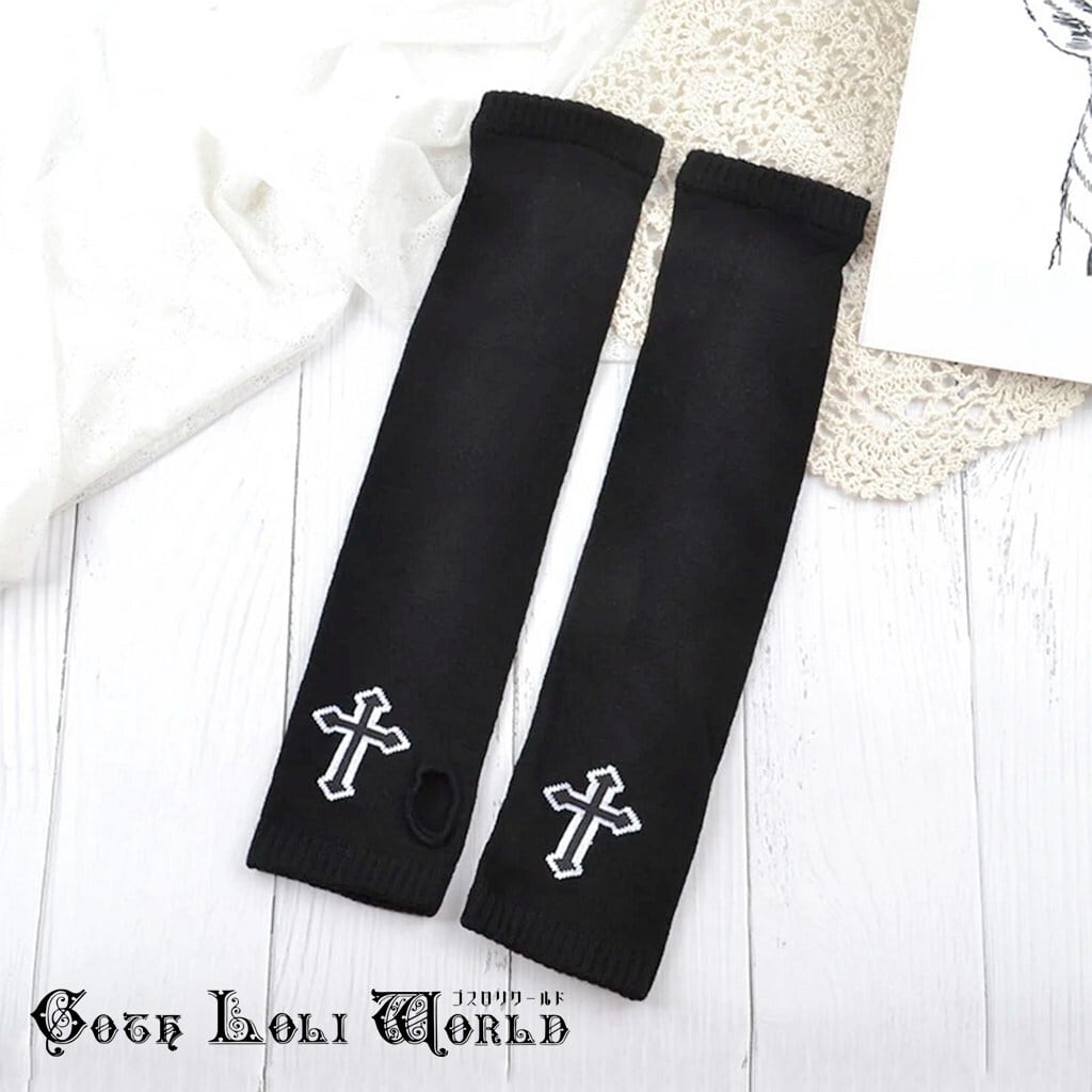 【即納/送料無料】ゴスロリワールド CE-AGL012 クロス 十字架 黒色 アームウォーマー ビジュアルファッション ユニセックス ビジュアル系 ヴィジュアル系 V系 モード系 原宿系 | ゴスロリワールド
