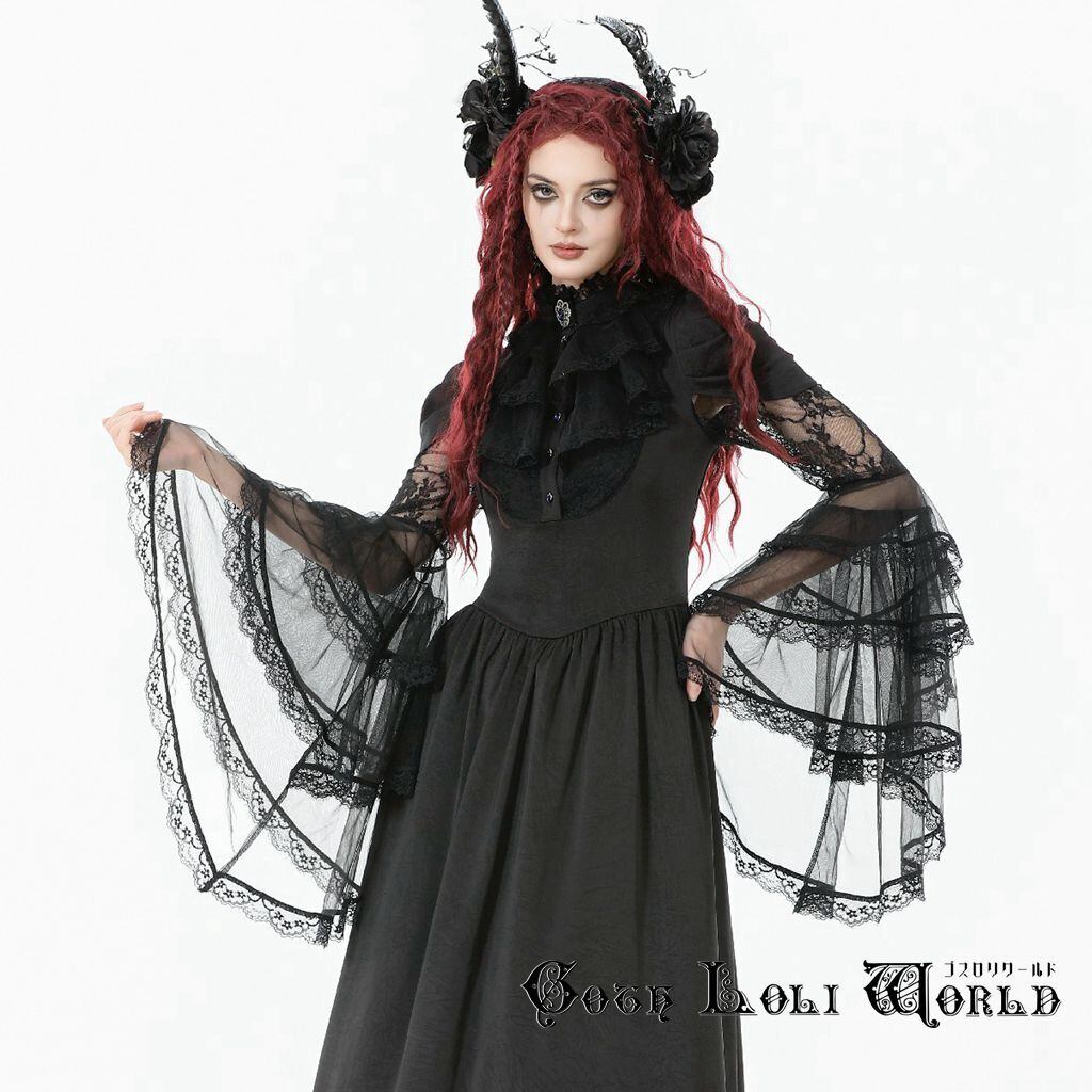 【即納/送料無料】ゴスロリワールド DW1134 地雷系 ゴスロリ ファッション フリル襟 シースルー袖 ワンピース ドレス ゴシック ゴスロリ ロリィタ ビジュアル系 ヴィジュアル系 | ゴスロリワールド