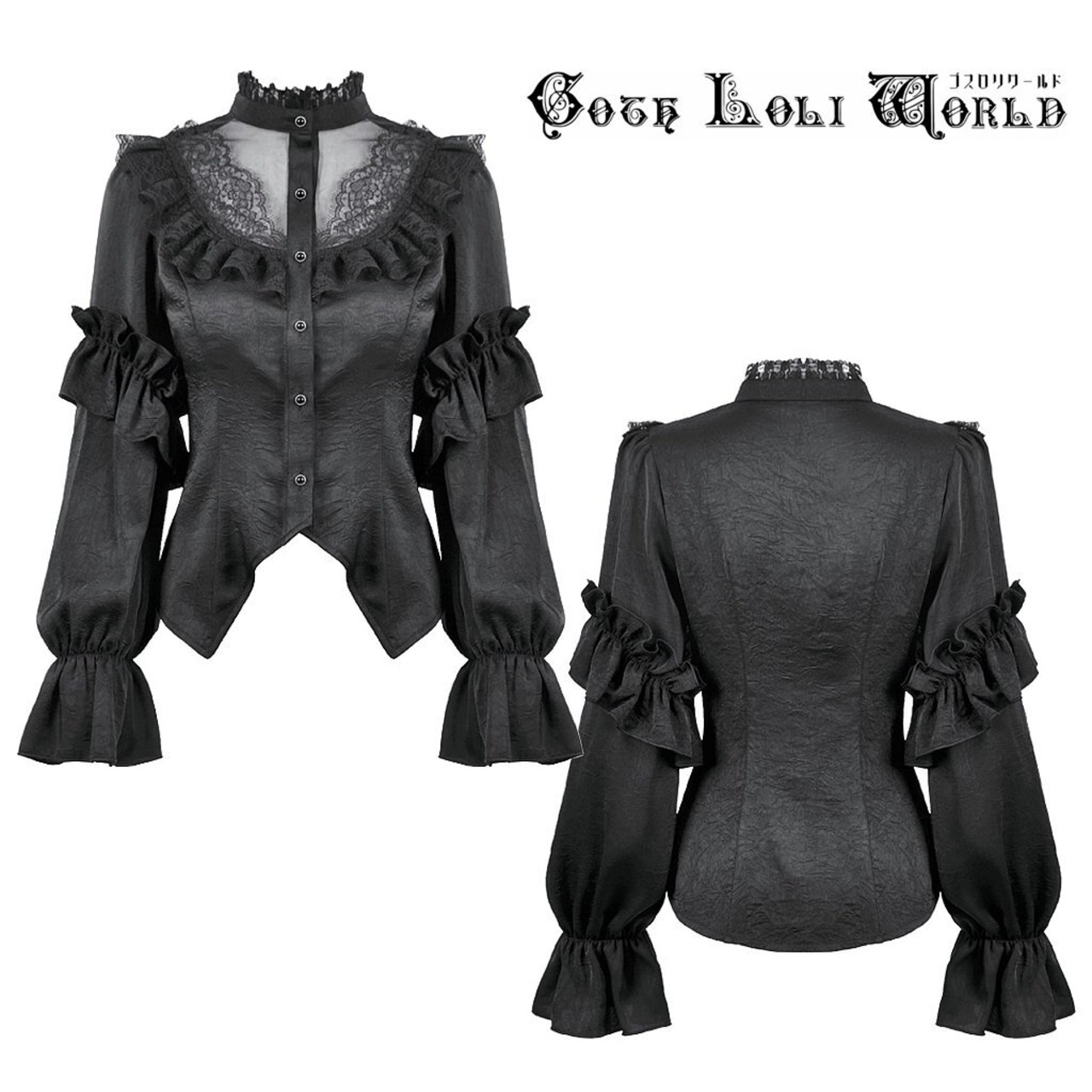 【即納/送料無料】ゴスロリワールド IW136 地雷系 ファッション レースカラー フリル 長袖シャツ ブラウス ゴスロリ ロリィタ ロリータ ビジュアル系 ヴィジュアル系 個性的 | ゴスロリワールド