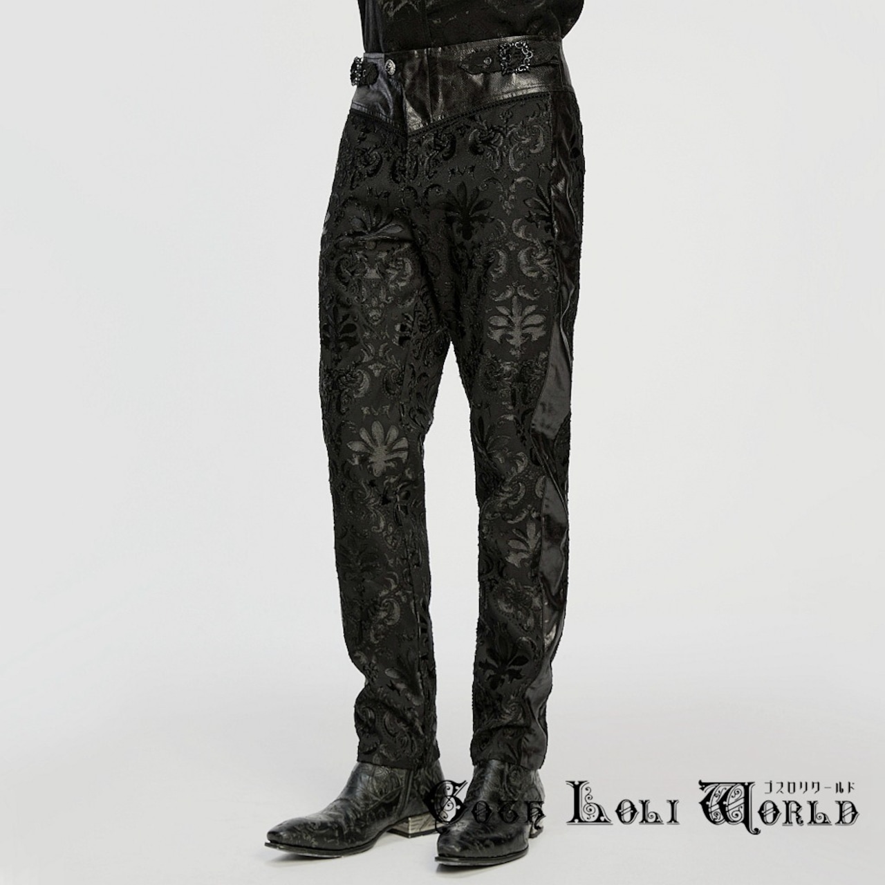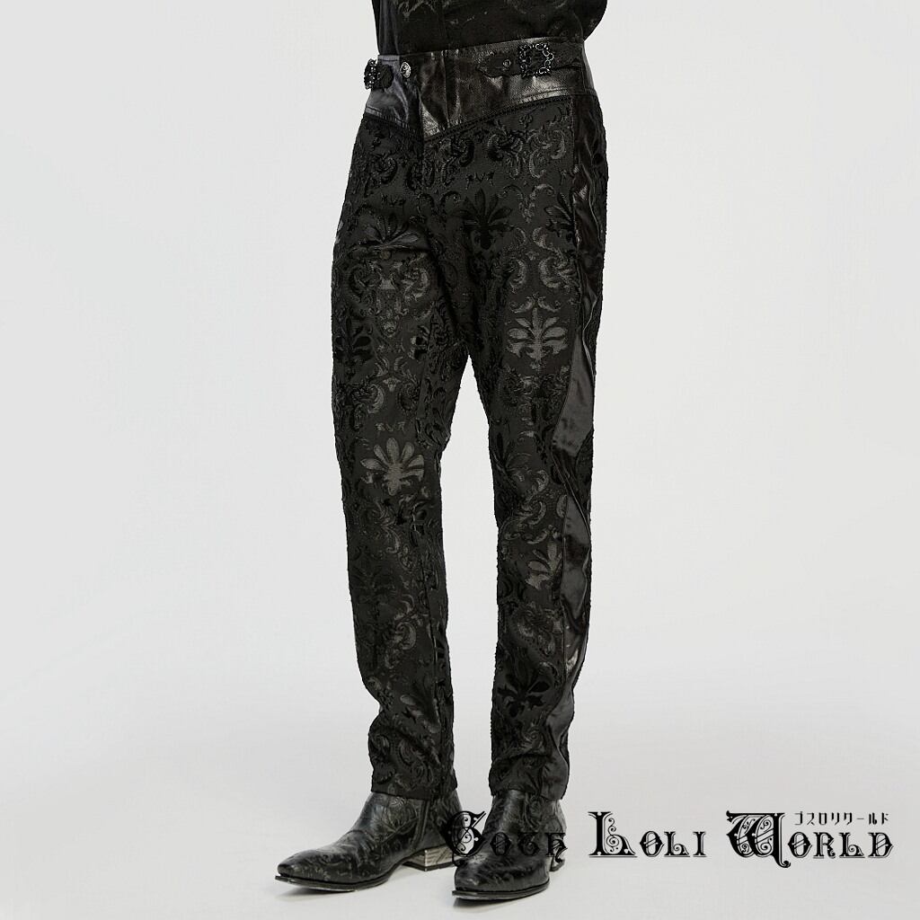 【即納/送料無料】ゴスロリワールド WK-725XCM-BK ゴシック ファッション ゴシック柄刺しゅう ロングパンツ メンズ ファッション ゴシック パンク ロック ビジュアル系 V系 | ゴスロリワールド