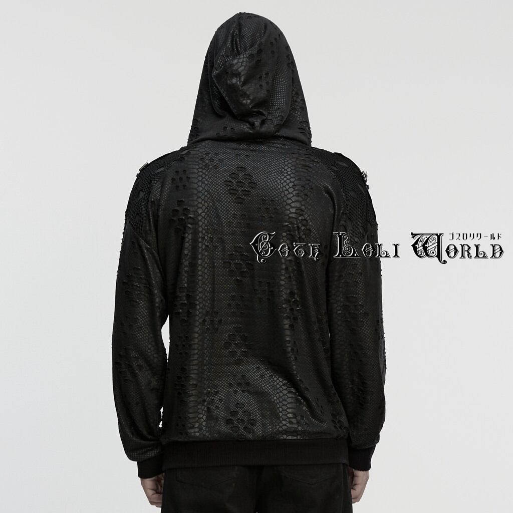 【即納/送料無料】ゴスロリワールド WT-1053WYM-BK パンク ロック ファッション ヘビ柄 フード付 カットソー パーカー メンズ ゴシック ビジュアル系 ヴィジュアル系 V系 個性的 | ゴスロリワールド