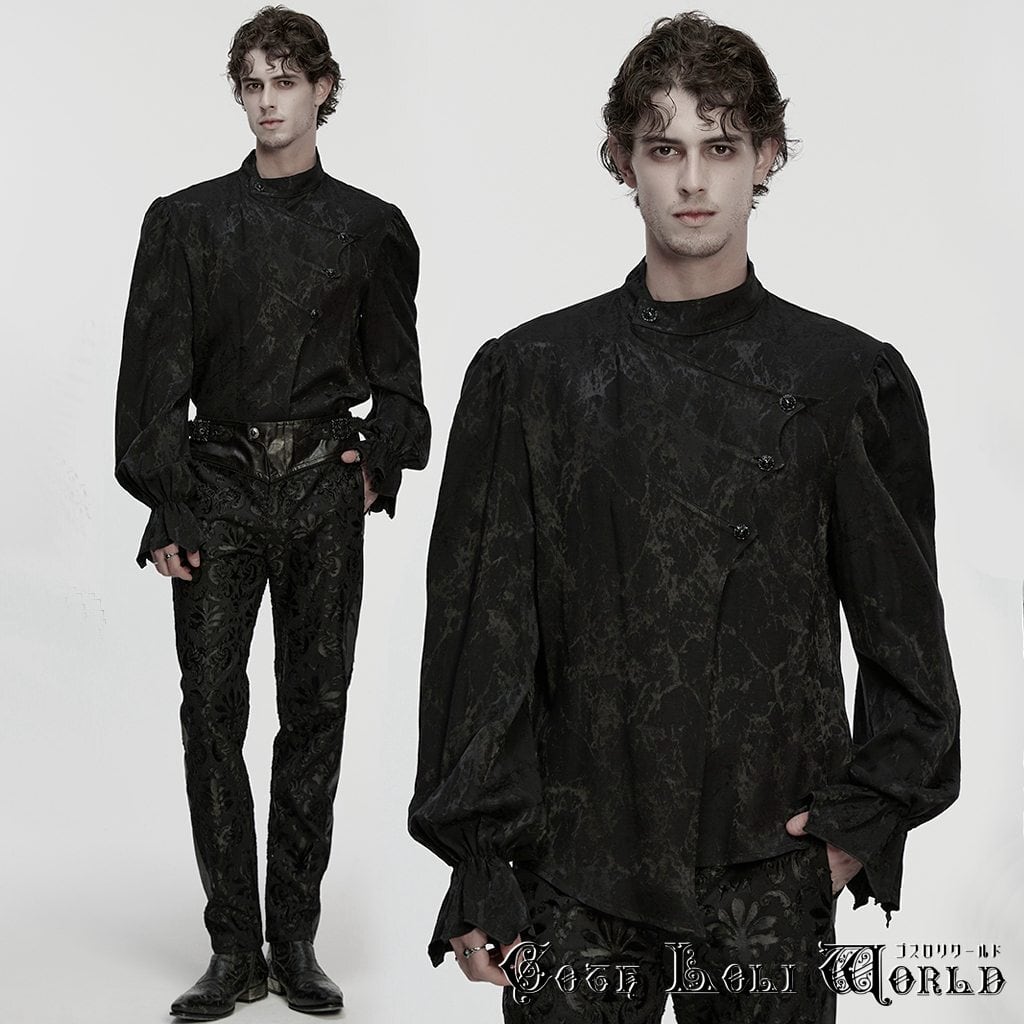 【即納/送料無料】ゴスロリワールド WY-1859CCM-BK ゴシック ファッション イレギュラープラケット 長袖シャツ ブラウス 黒色 紳士 ジェントルマン 貴族 スチームパンク 舞台衣装 | ゴスロリワールド