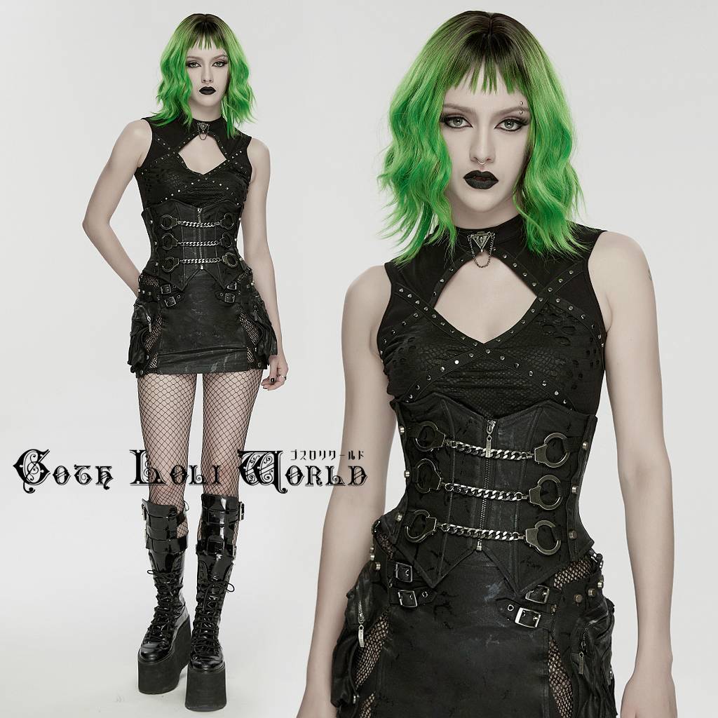 【即納/送料無料】ゴスロリワールド WS-880YDF-BK パンク ロック ファッション トリプル手錠 コルセット 黒色 レディース ゴシック ビジュアル系 ヴィジュアル系 V系 地雷系