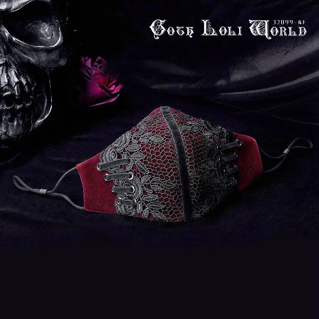 【即納/送料無料】ゴスロリワールド WS-441KZ-RD ゴシック ファッション メッシュ柄刺しゅう マスク ワインレッド 赤色 メンズ レディース 男女兼用 個性的 ライブ衣装 舞台衣装