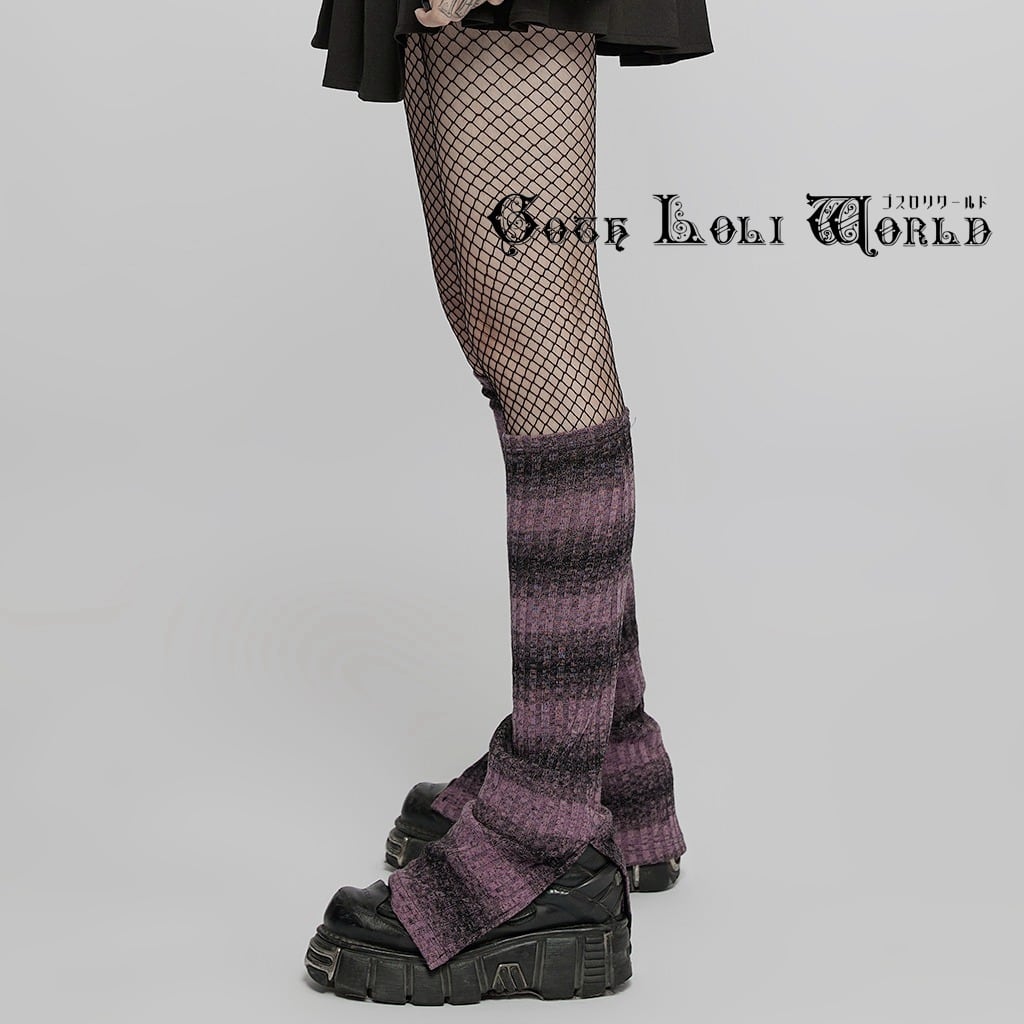 【即納/送料無料】ゴスロリワールド WS-513JTF-BK-VI 地雷系 ファッション ボーダーニット レッグウォーマー 黒紫色 パンク ロック ゴシック V系 モード系 サブカル 個性的