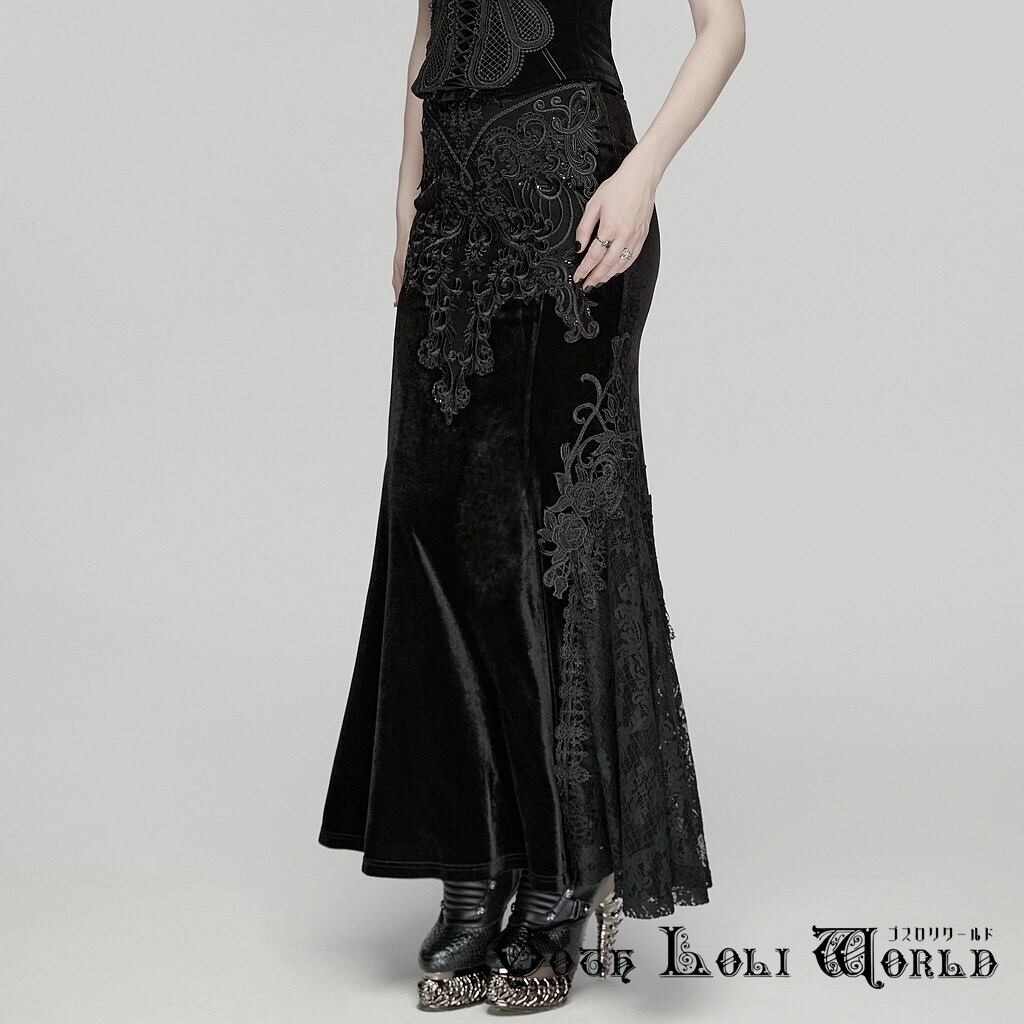 【即納/送料無料】ゴスロリワールド WQ-942BQF-BK ゴスロリ ファッション サイトレース マーメイド ロングスカート ゴシック ロリィタ ロリータ ビジュアル系 V系 地雷系