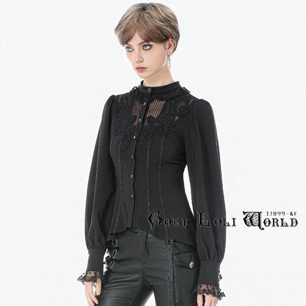 【即納/送料無料】ゴスロリワールド IW144 ゴシック ファッション スタンドカラー ロングカフス 長袖シャツ ブラウス 地雷系 ゴスロリ パンク ビジュアル系 ヴィジュアル系 V系
