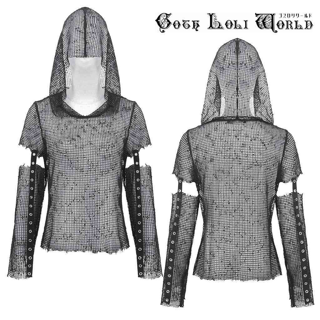 【即納/送料無料】ゴスロリワールド TW678 パンク ロック ファッション オールメッシュ フード付 カットソー パーカー 地雷系 ゴスロリ パンク ビジュアル系 ヴィジュアル系 V系