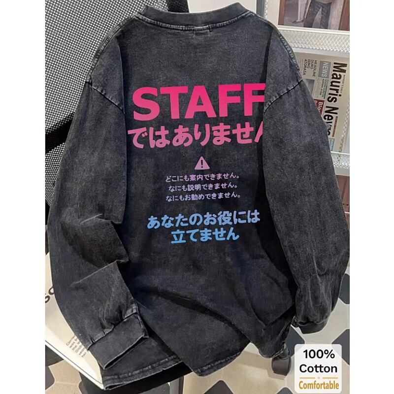 【即納/送料無料】当日発送 即納 GLW-030 ビンテージ加工 オーバーサイズ コットン 長袖Tシャツ カットソー トップス 男女兼用 原宿系 おもしろ ネタ 文字Tシャツ 大きいサイズ