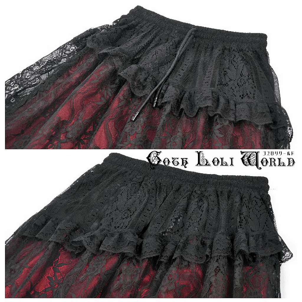 【即納/送料無料】ゴスロリワールド KW433 ゴシック ファッション ワインレッド アシメ ロング丈 スカート ゴスロリ ロリィタ ビジュアル系 ヴィジュアル系 V系 地雷系 個性的