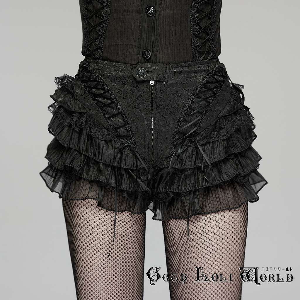【即納/送料無料】ゴスロリワールド WK-768XDF-BK ゴスロリ ファッション フリフリ フリルスカート風 ショートパンツ 地雷系 ライブ衣装 舞台衣装 ステージ衣装 サブカル 個性的