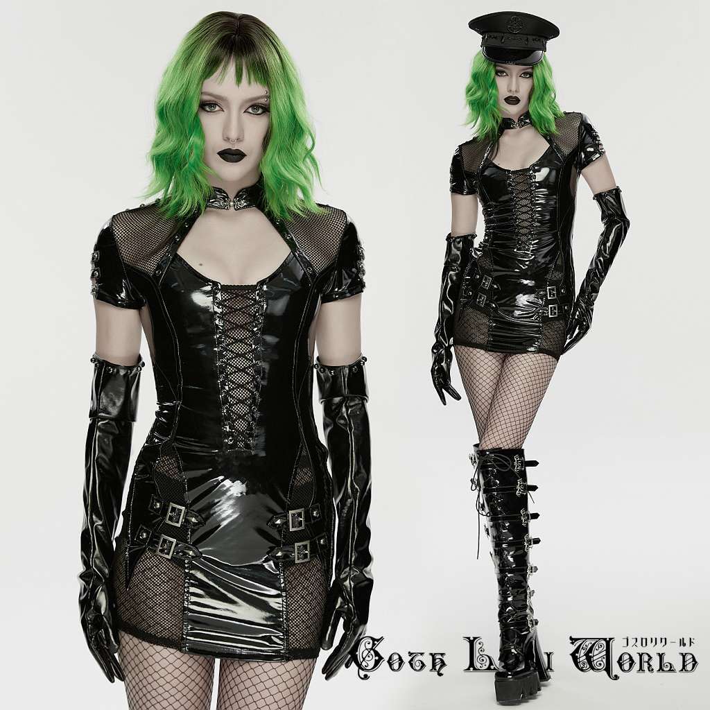 【即納/送料無料】ゴスロリワールド WQ-947LQF-BK-BRI パンク ロック ファッション セクシー タイト エナメル ミニ ワンピース ゴシック 地雷系 サブカル 個性的 ライブ衣装