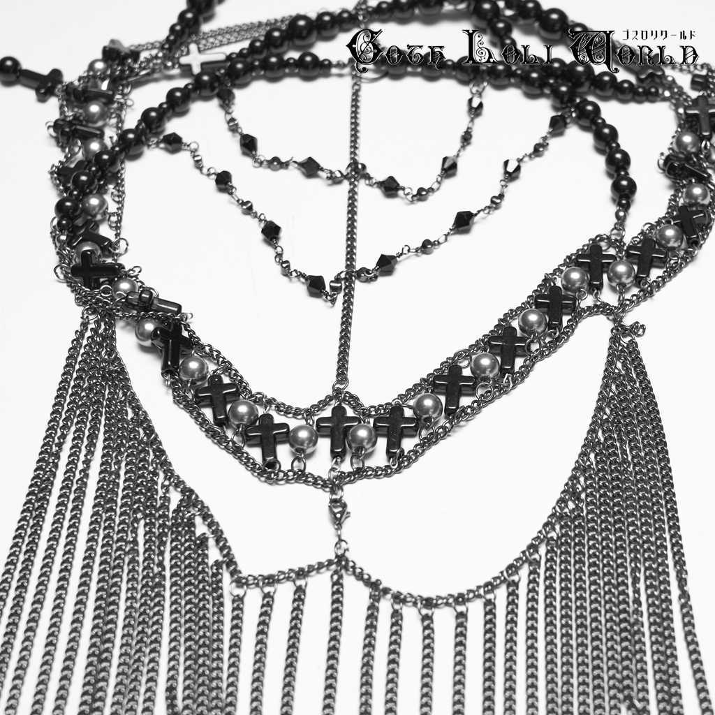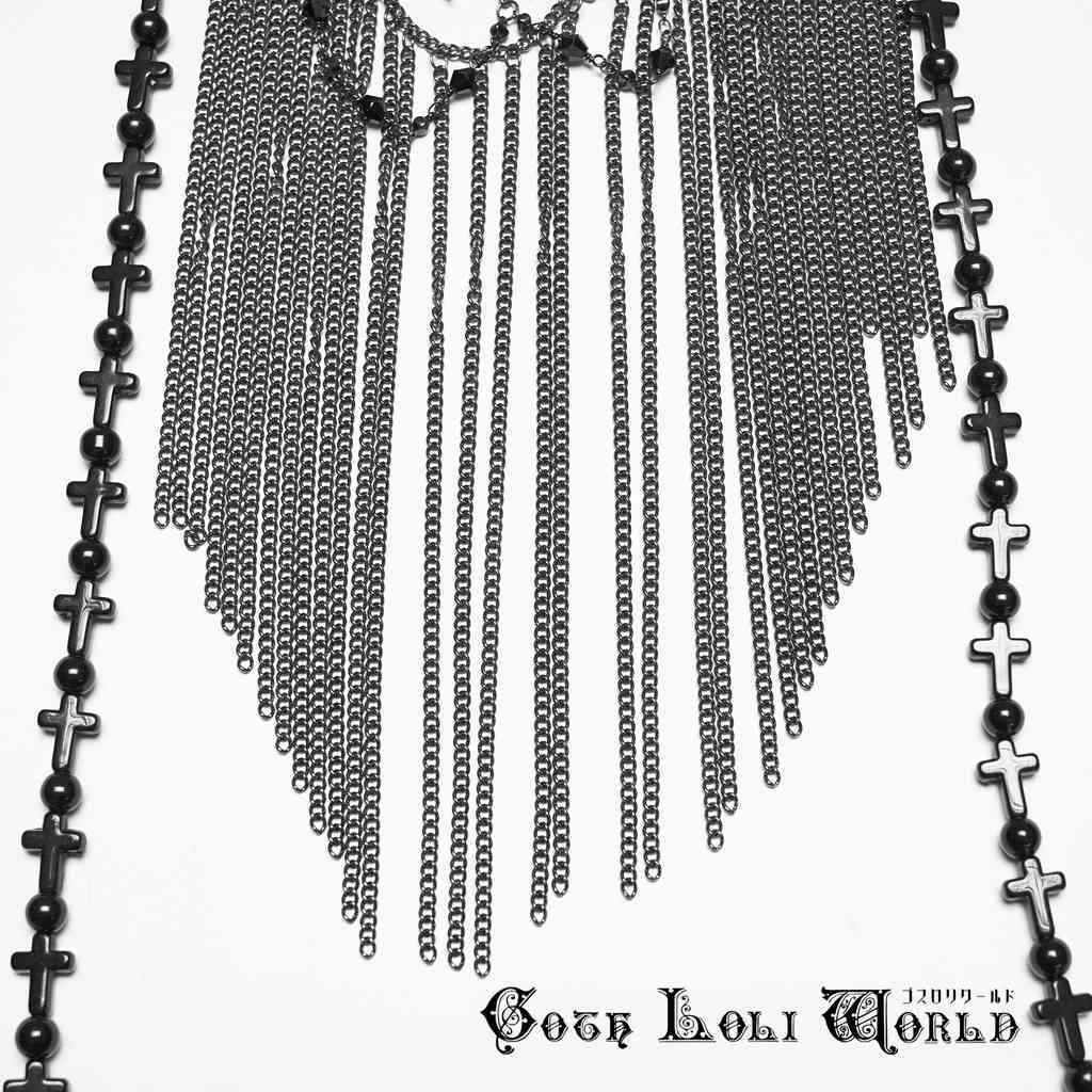 【即納/送料無料】ゴスロリワールド WS-890FSF-BK-TA 地雷系 ゴスロリ ファッション クロスチャーム イミテーションパール ヘッドチェーン ライブ衣装 舞台衣装 ステージ衣装