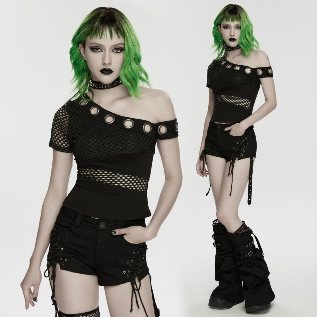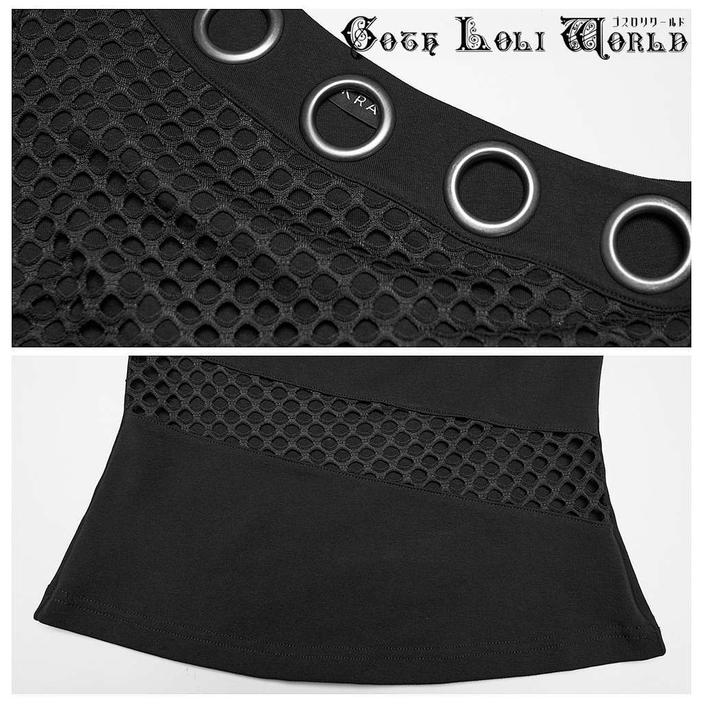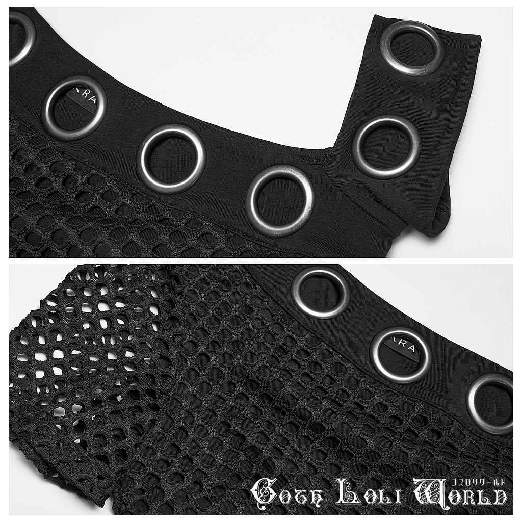 【即納/送料無料】ゴスロリワールド WT-1078TDF-BK パンク ロック ファッション アシメオフショルダー 半袖 カットソー Tシャツ ゴシック ヴィジュアル系 V系 地雷系 個性的