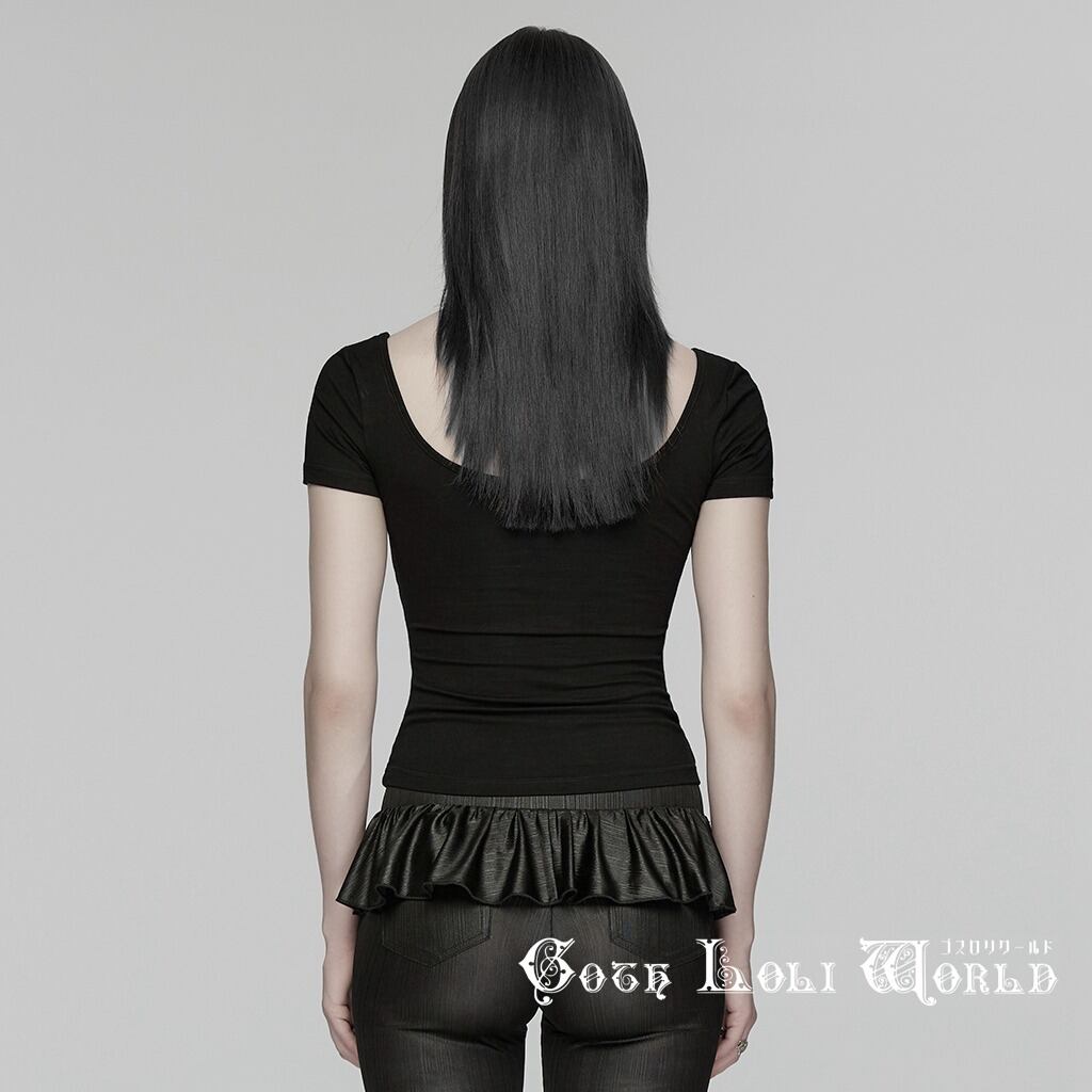【即納/送料無料】ゴスロリワールド WT-1081TDF-BK パンク ロック ファッション ダメージ 裏レース付 セクシー 半袖 カットソー Tシャツ ゴシック ヴィジュアル系 地雷系 個性的