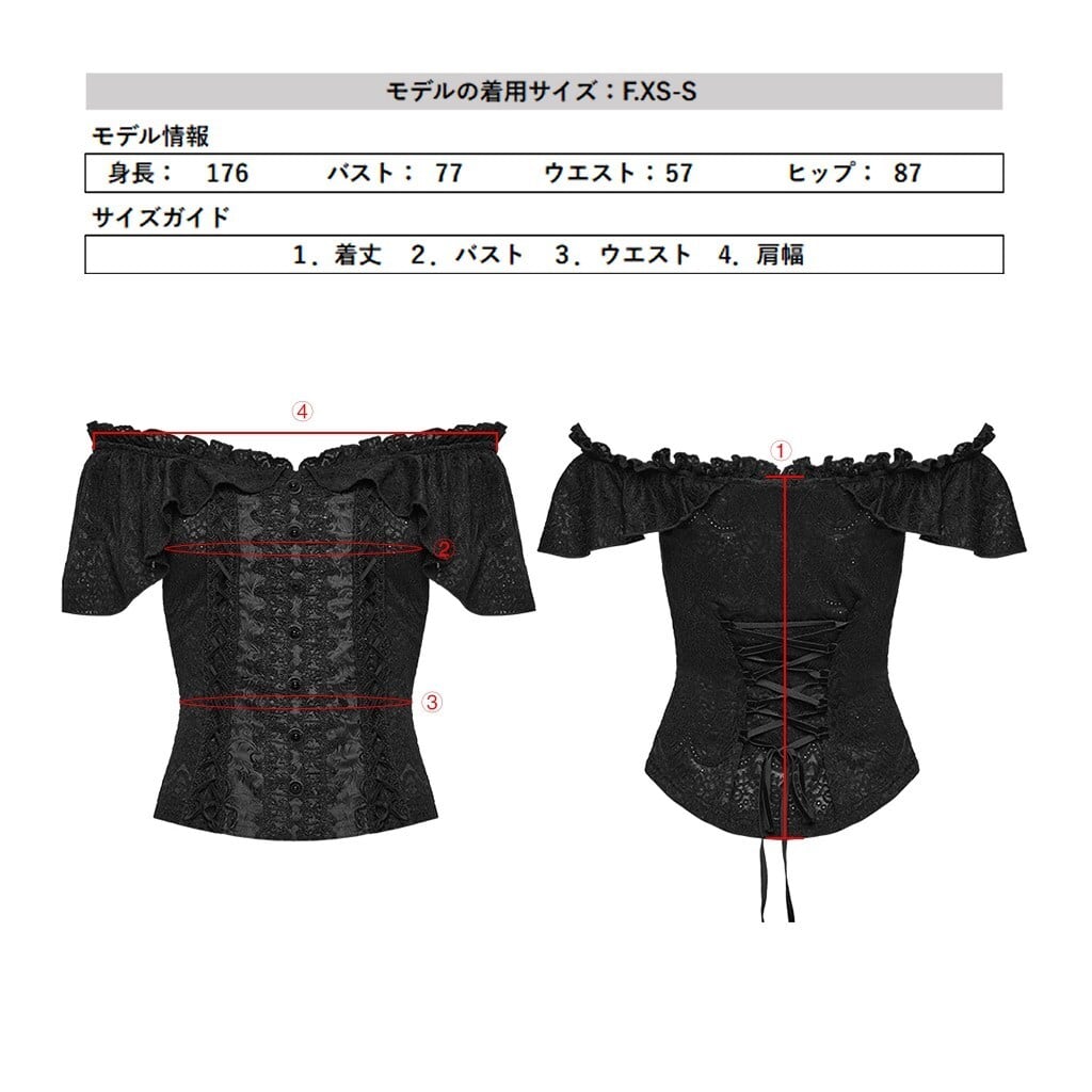 【即納/送料無料】ゴスロリワールド WT-1094TDF-BK ゴシック ファッション オフショルダー フリル 半袖 カットソー ゴシック ヴィジュアル系 地雷系 個性的 ライブ衣装 舞台衣装