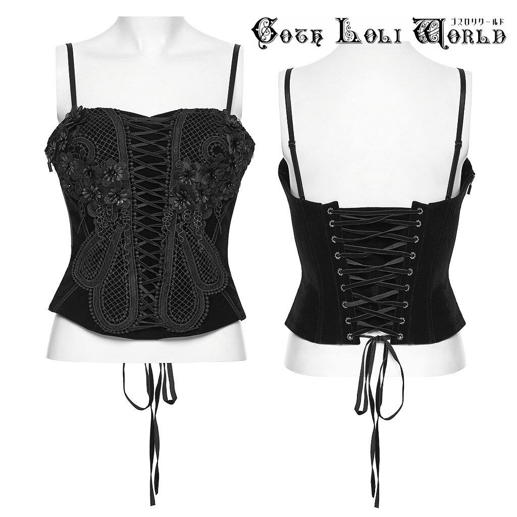 【即納/送料無料】ゴスロリワールド WY-1909SYF-BK ゴシック ファッション 肩ひも付き ダークフラワー ベロア コルセット キャミソール ゴスロリ ビジュアル系 地雷系 サブカル
