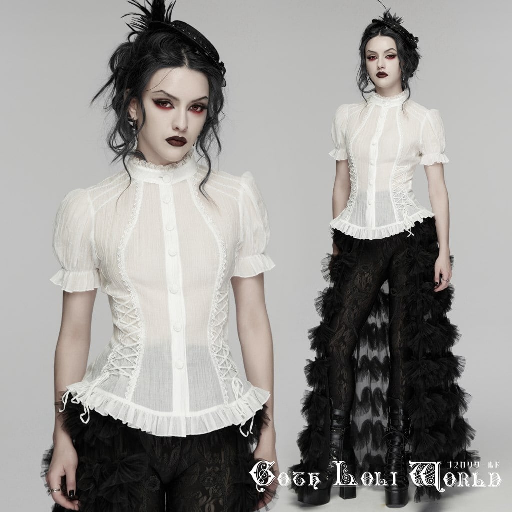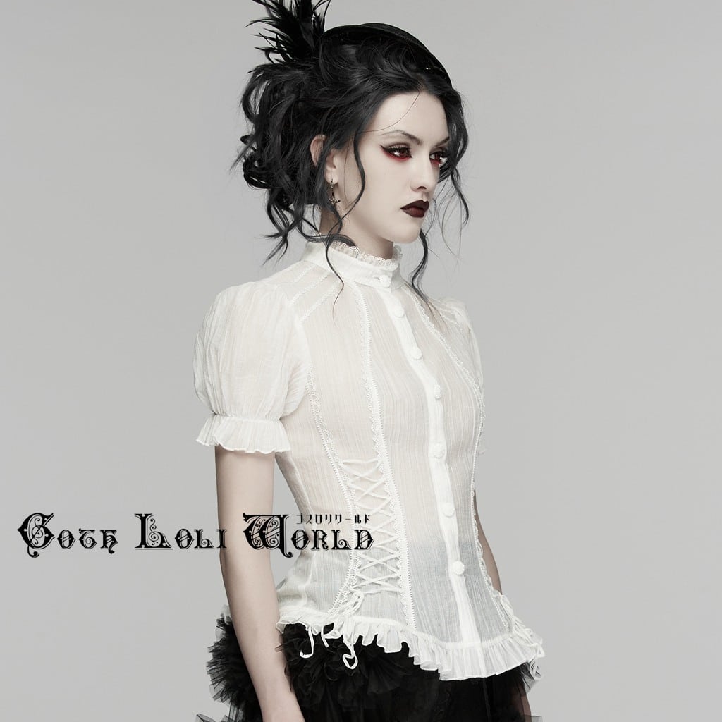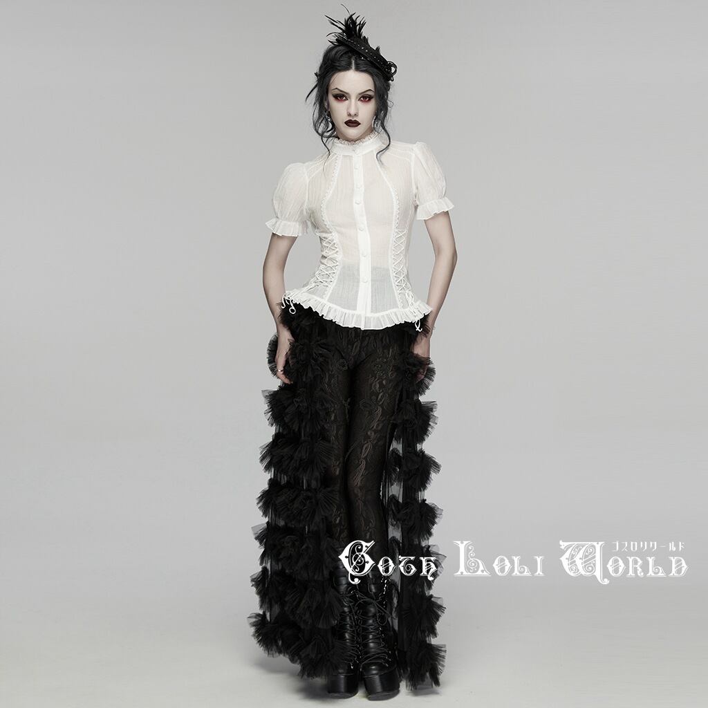 【即納/送料無料】ゴスロリワールド WY-1916CDF-WH ゴスロリ ファッション フリル バルーンスリーブ 半袖 ブラウス 白色 ホワイト ゴシック ロリィタ ロリータ 地雷系 サブカル
