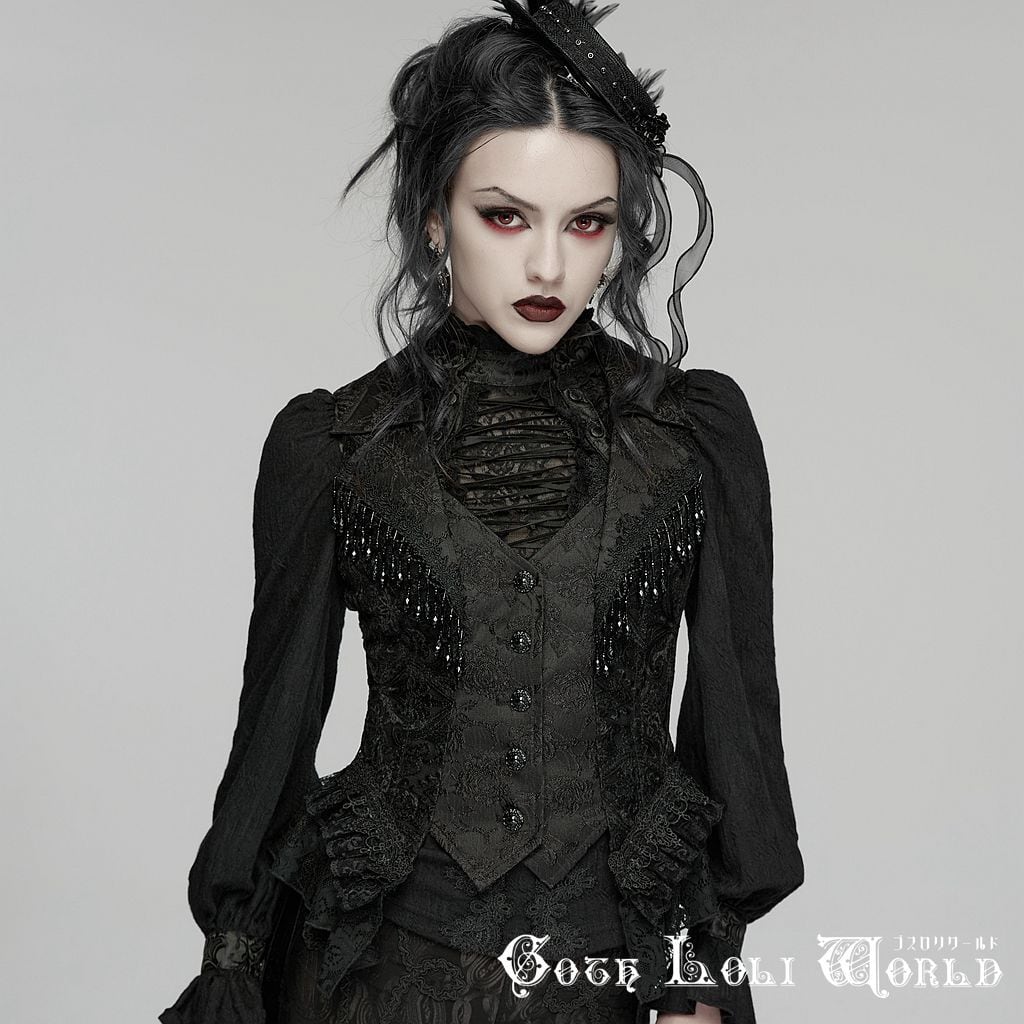 【即納/送料無料】ゴスロリワールド WY-1922MJF-BK ゴシック ファッション レース ビーズ ゴージャス ジレ ベスト 黒色 ゴシック ビジュアル系 ヴィジュアル系 V系 地雷系