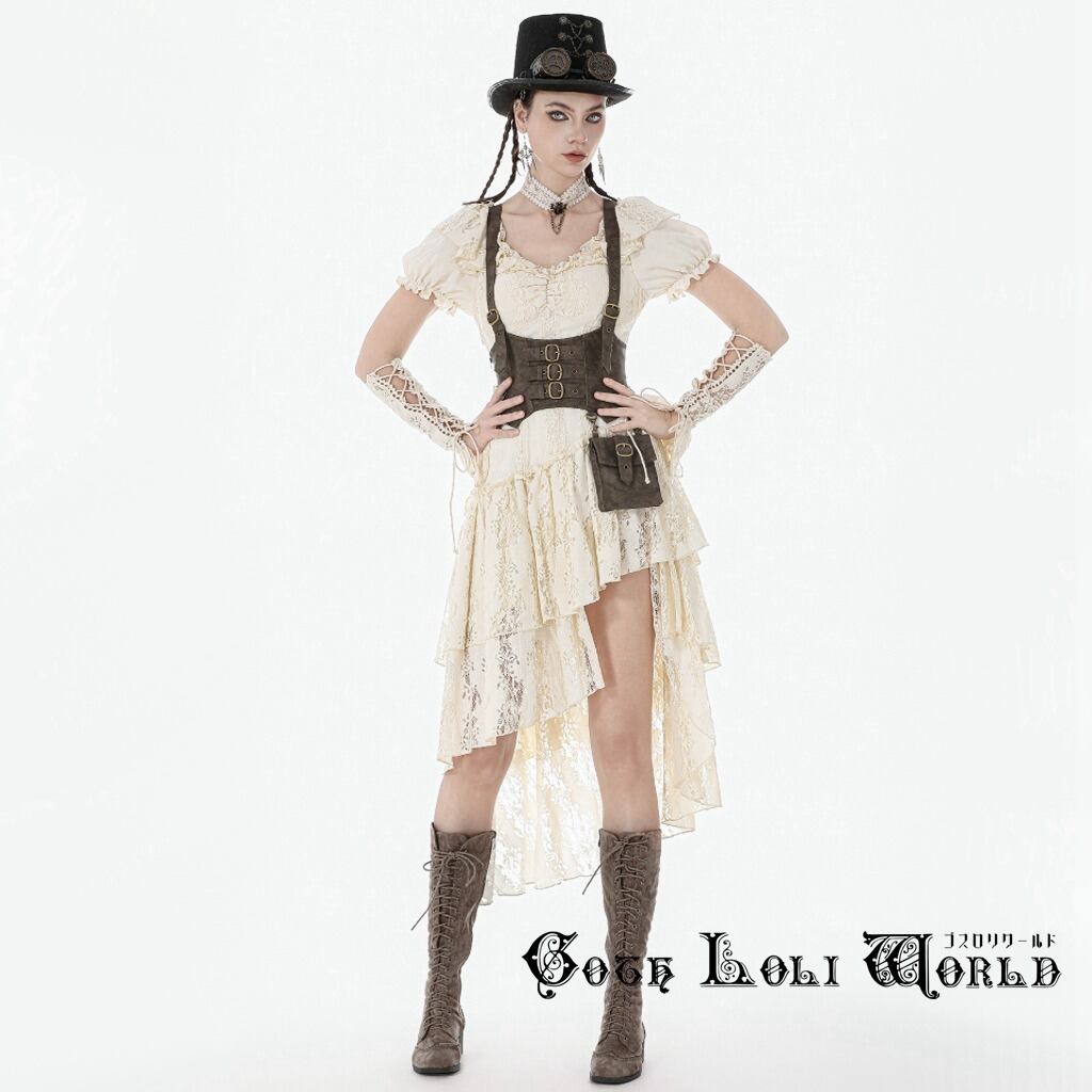 【即納/送料無料】ゴスロリワールド DW1157 スチームパンク ファッション アシンメトリーデザイン ベージュ色 ワンピース ドレス ゴシック ゴスロリ ロリィタ ライブ衣装 イベント衣装