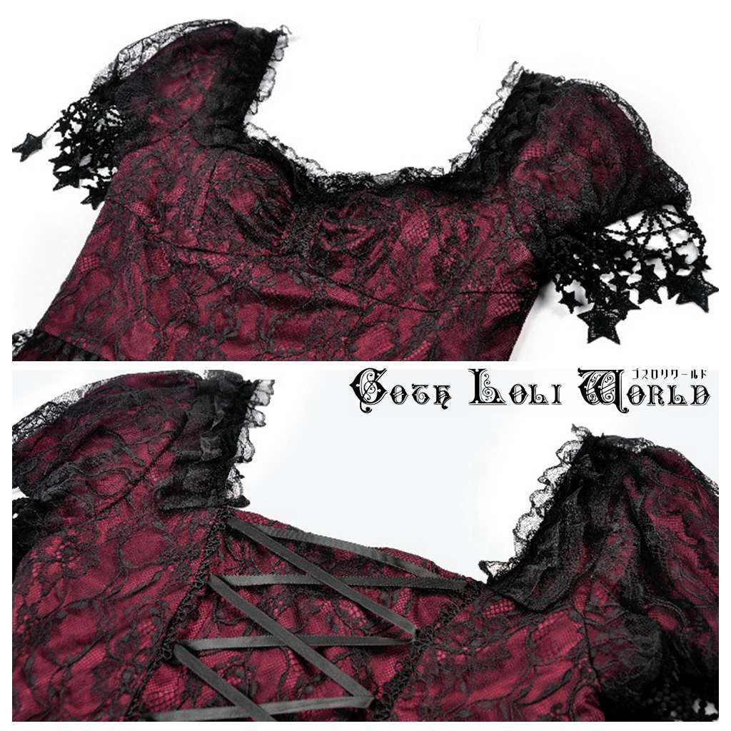 【即納/送料無料】ゴスロリワールド DW1160 ゴスロリ ファッション 地雷系 レースドッキング ワインレッド ワンピース ドレス ゴシック ロリィタ ライブ衣装 イベント衣装