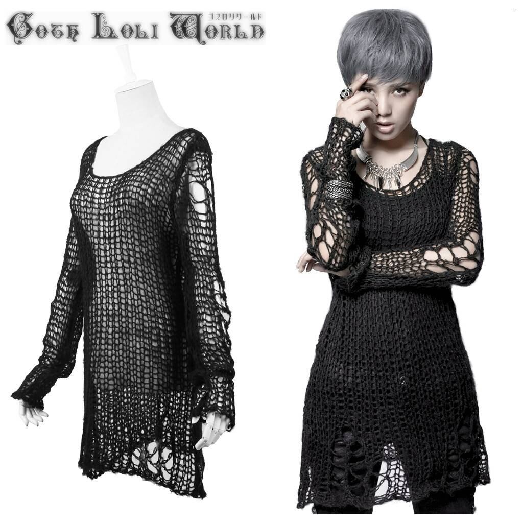 【即納/送料無料】PM-004BKF PUNKRAVE ダメージ 穴あき ニット ブラック レディース 原宿系 ゴスロリ ゴシック ロリータ パンク スチームパンク ビジュアル系 ヴィジュアル系 V系 ファッション コスプレ ライブ 舞台 ステージ イベント 衣装