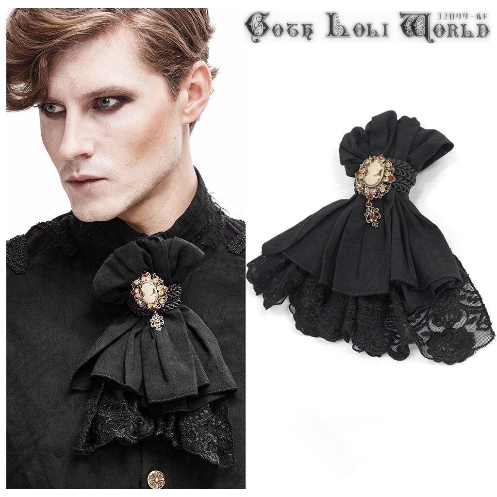 【即納/送料無料】AS068 Devil カメオブローチ付 ブラック レース シャボ ゴスロリ ゴシック ロリータ パンク スチームパンク ビジュアル系 ヴィジュアル系 V系 ファッション コスプレ ライブ 舞台 ステージ イベント 衣装 | ゴスロリワールド