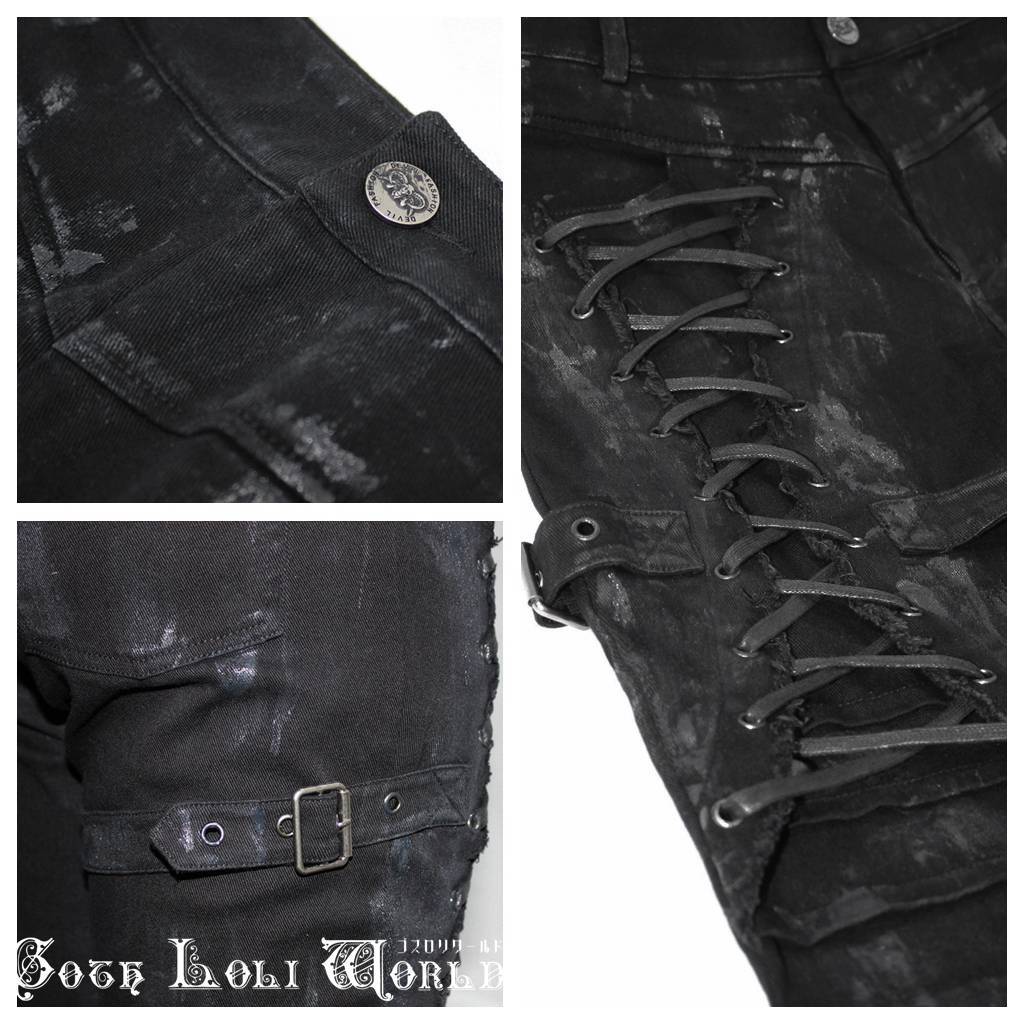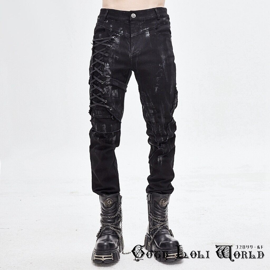 【即納/送料無料】PT112 Devil 汚し風 アシメ レースアップ ロングパンツ ゴスロリ ゴシック ロリータ パンク スチームパンク ビジュアル系 ヴィジュアル系 V系 ファッション コスプレ ライブ 舞台 ステージ イベント 衣装 | ゴスロリワールド