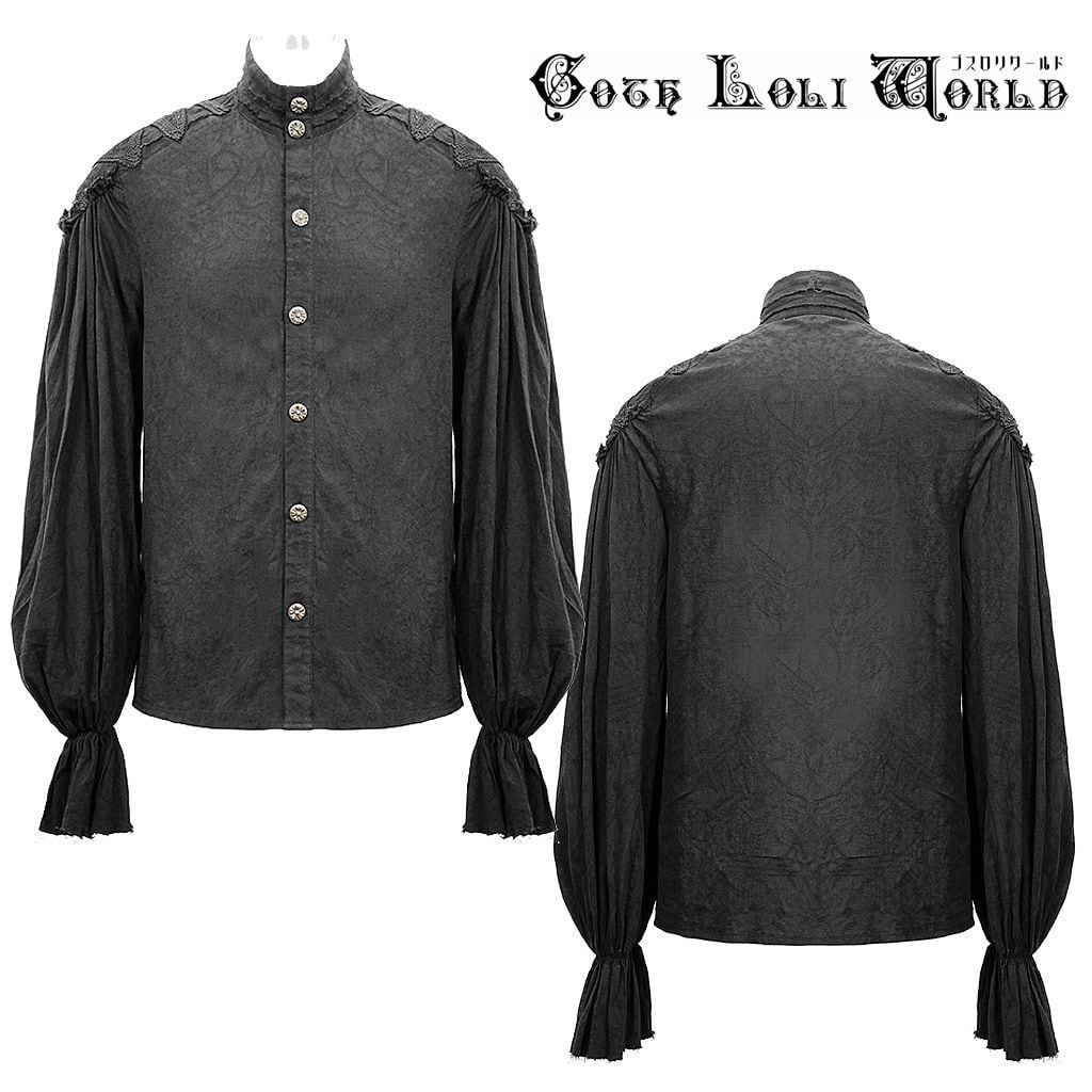 【即納/送料無料】ゴスロリワールド SHT04801 ゴシック ファッション ショルダーエンブロ付 長袖シャツ ブラウス 黒色 ゴシック パンク ロック ヴィジュアル系 V系 モード系 | ゴスロリワールド