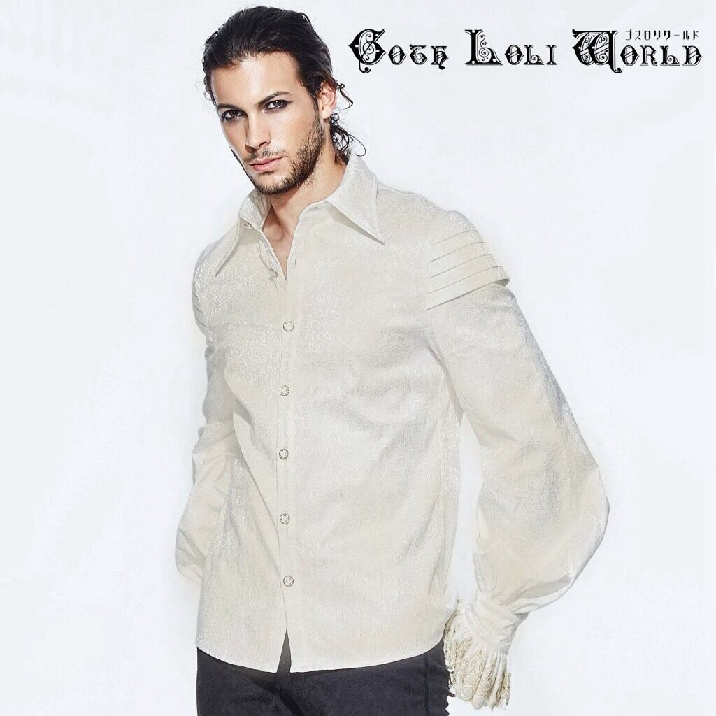 【即納/送料無料】ゴスロリワールド SHT030 スチームパンク ファッション ジャボ付 ゴールド刺繍 ダマスク柄 長袖シャツ ブラウス ベージュ色 ライブ衣装 舞台衣装 ステージ衣装